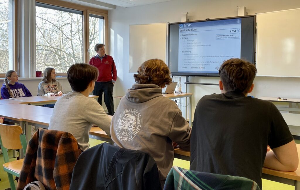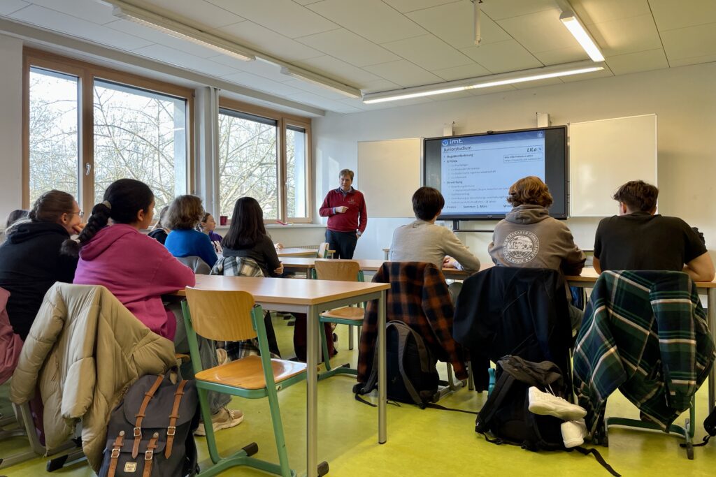 Wie das genau abläuft, welche Voraussetzungen man dafür mitbringen muss und wie man sich dafür bewirbt, darüber weiß Herr Dr. Alexander Neumann vom Institut für Medizintechnik der Universität zu Lübeck bestens Bescheid. Deshalb kam er am Donnerstag, den 2. Februar, an die TMS, um im Rahmen der Begabtenförderung Schülerinnen und Schüler über das Juniorstudium zu informieren.