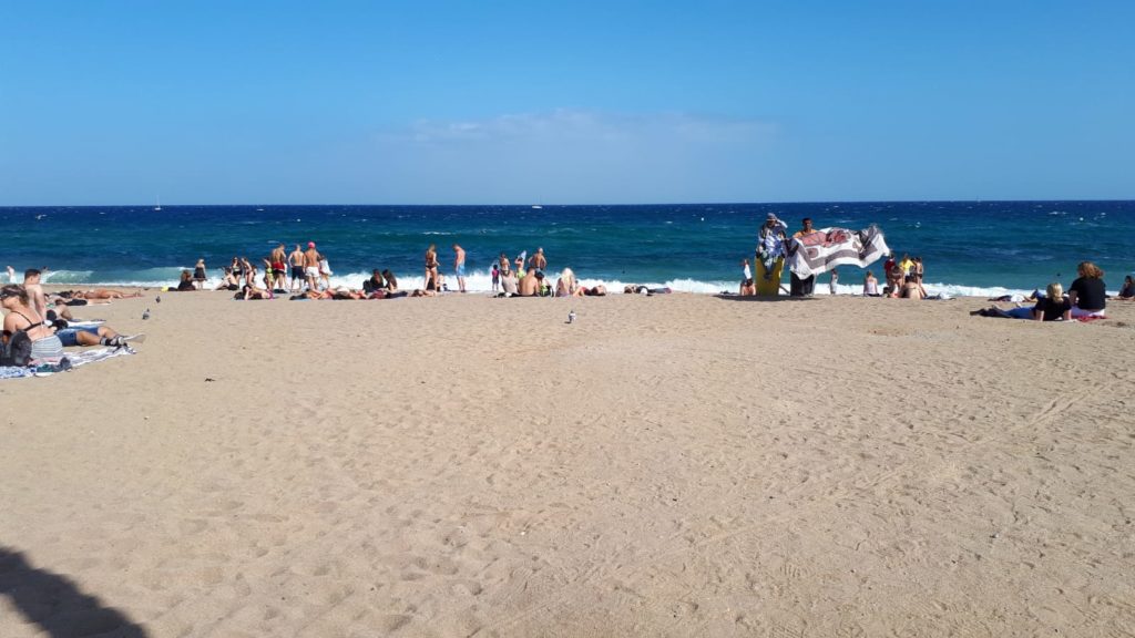 Nach diesen vielen Eindrücken stand nun etwas Zerstreuung an: Und so ging es an den Stadtstrand Barcelonas. Bei 25 Grad und Sonne konnte man entweder die Seele baumeln lassen, oder sich wagemutig in die meterhohen Wellen des Mittelmeeres stürzen, bevor es abends zurück ins Hostel ging.