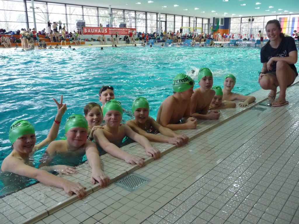 Am Freitag, den 15. März 2019 traten fünf Mannschaften der Thomas-Mann-Schule beim Staffeltag in der Schwimmhalle in der Ziegelstraße gegen die anderen Lübecker Schulen an. Nach den Wettkämpfen für die Grundschulen begannen die Mädchen der Klassenstufen 5 und 6. Sie mussten 8 x 25m Freistil schwimmen. Aufgeregt gingen Sie an den Start und platzierten sich von 8 Mannschaften auf einen fünften Platz. Herzlichen Glückwunsch an Alina, Olivia, Jana, Carlotta, Eda, Mina, Marie und Nathalie und an die Ersatzschwimmerinnen (Johanna und Loa)!