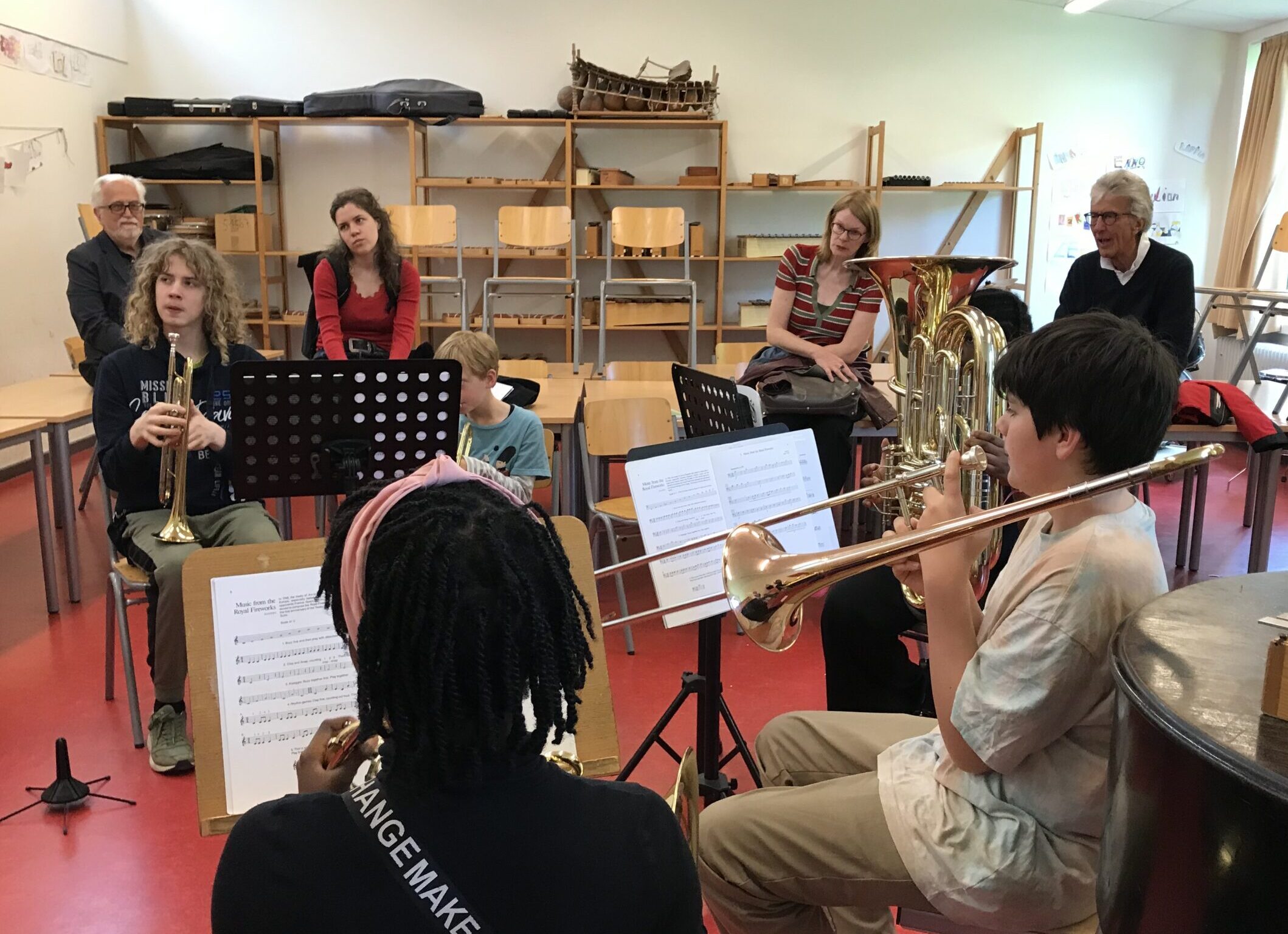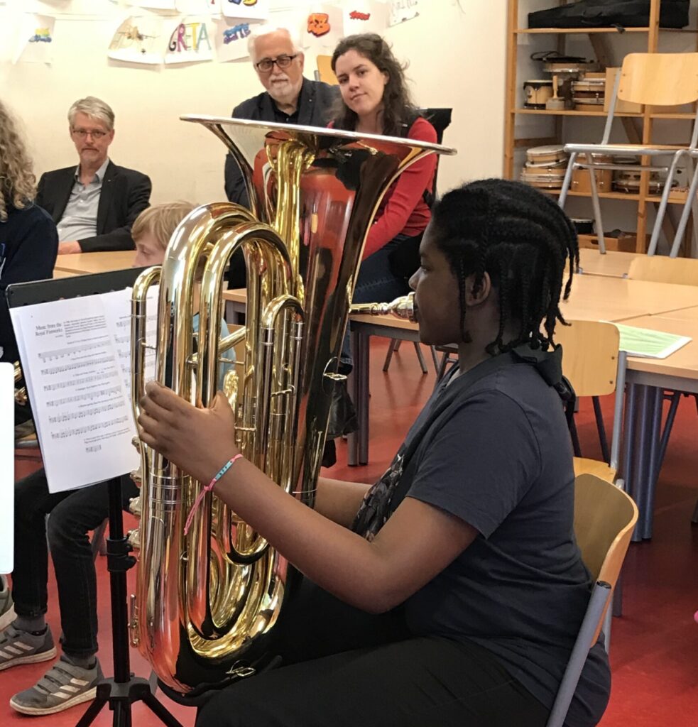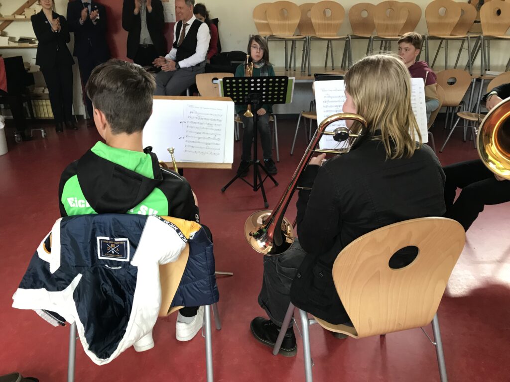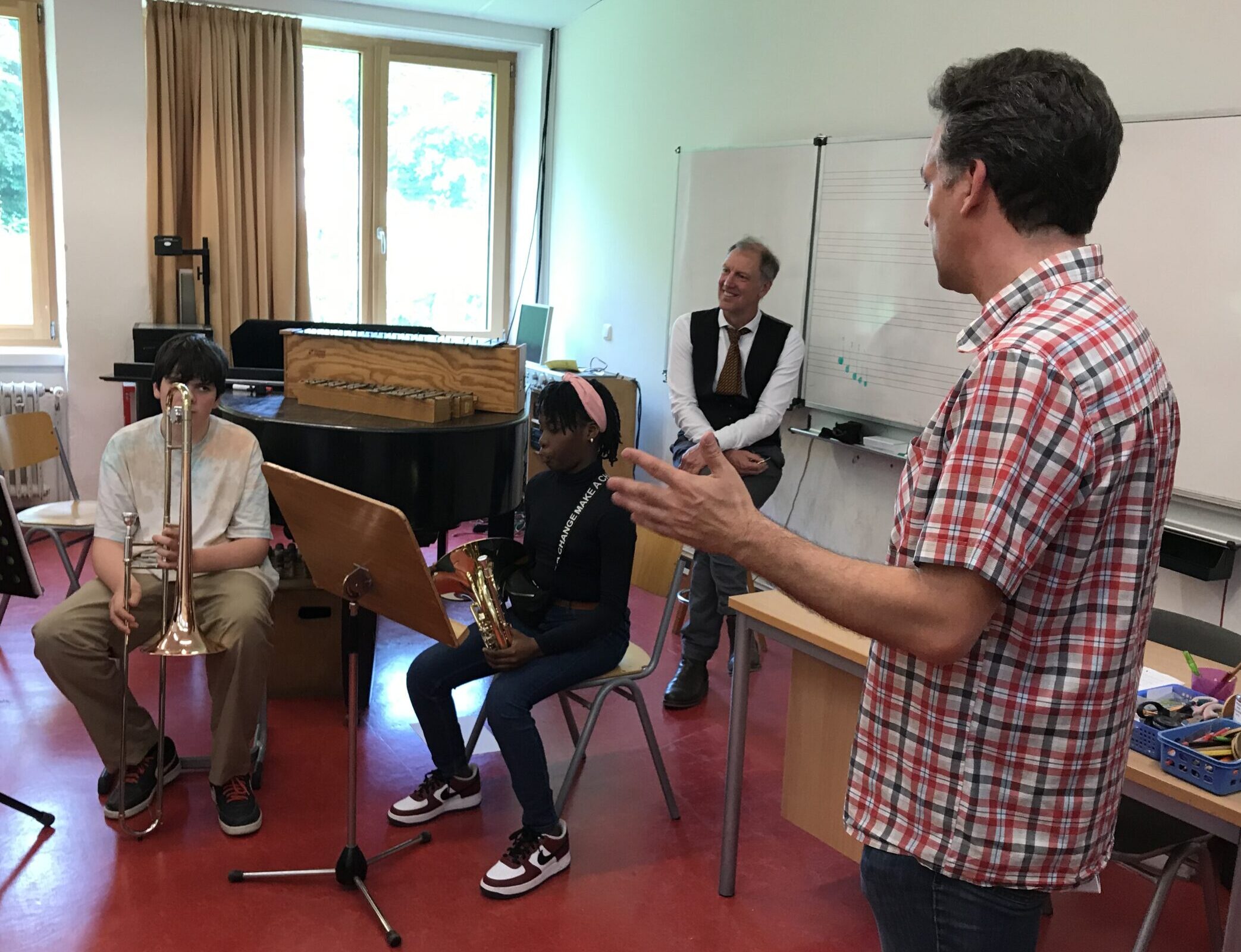 Dieses beeindruckende Erlebnis grenzüberschreitenden Musikunterrichts überzeugte unsere Gäste, dass die Förderung unserer Blechbläser ein sinnvolles Unterfangen darstellt.
