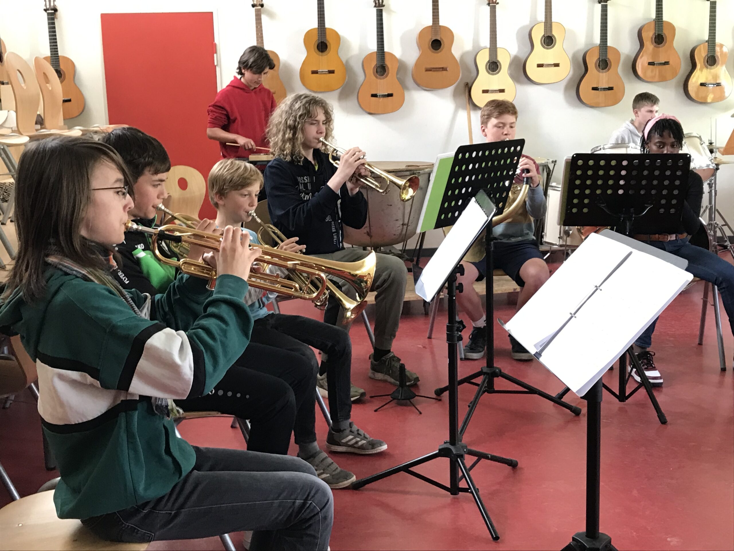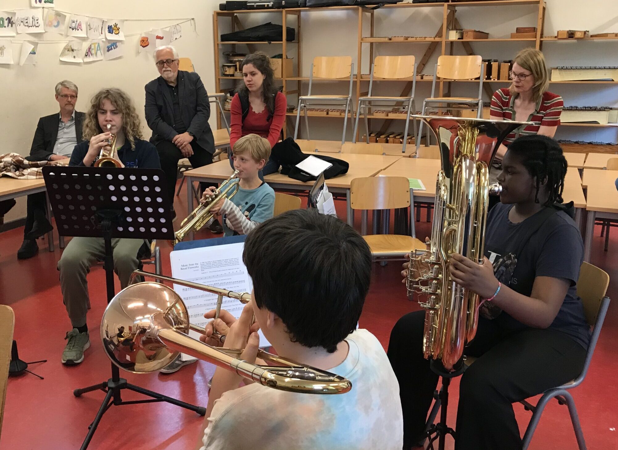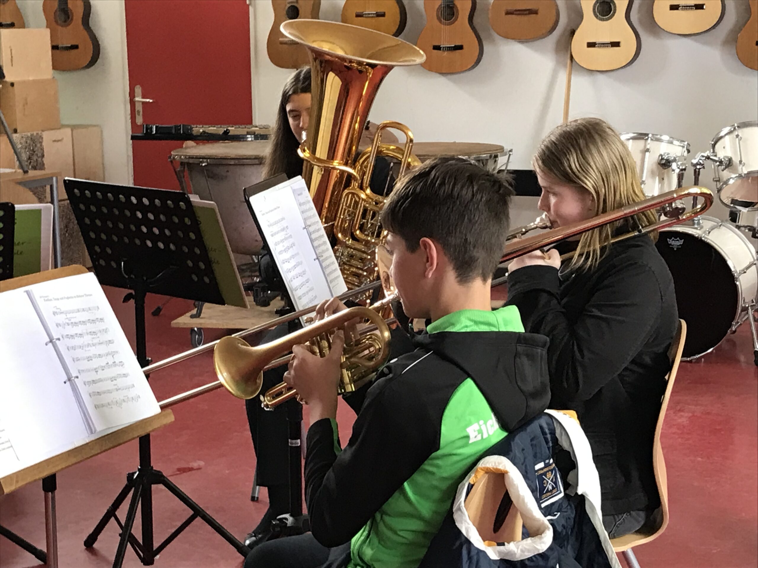 Dieses beeindruckende Erlebnis grenzüberschreitenden Musikunterrichts überzeugte unsere Gäste, dass die Förderung unserer Blechbläser ein sinnvolles Unterfangen darstellt.