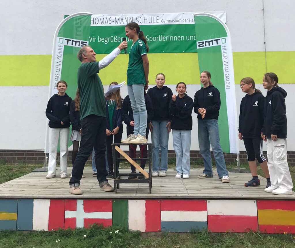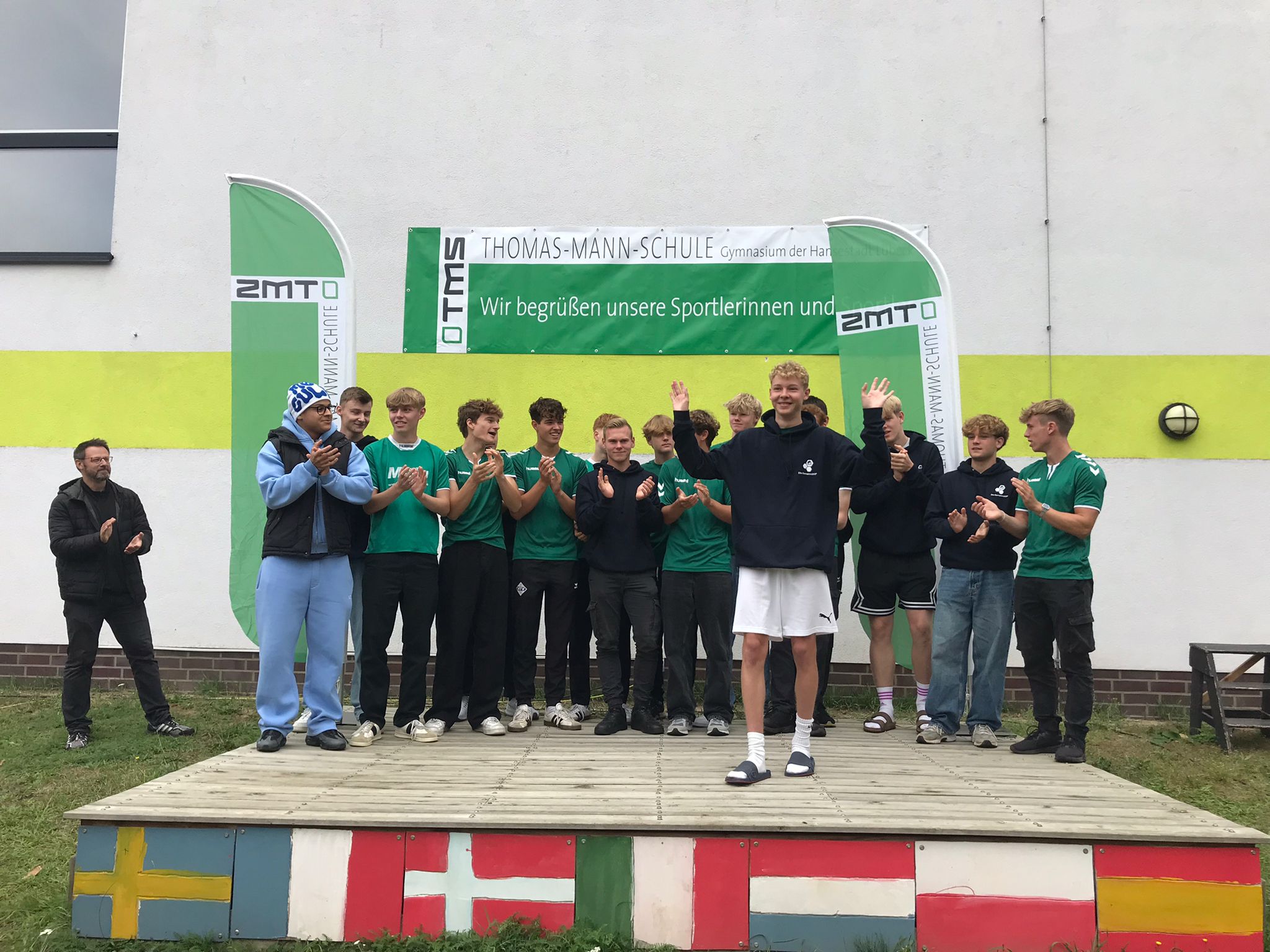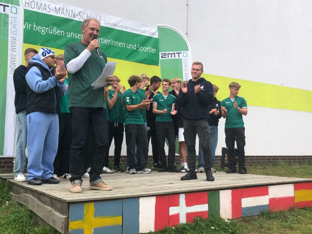 Am Tag vor dem 75. Staffeltag der Lübecker Schulen präsentierte Herr Rother die TMS-Mannschaften der Schülerschaft.