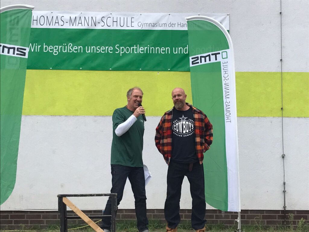Er lud sie auf die Bühne und warb um Applaus für die Teams, die wochenlang für das Event trainiert hatten. Probehalber platzierte er die Sportlerinnen und Sportler schon einmal auf dem Siegertreppchen.