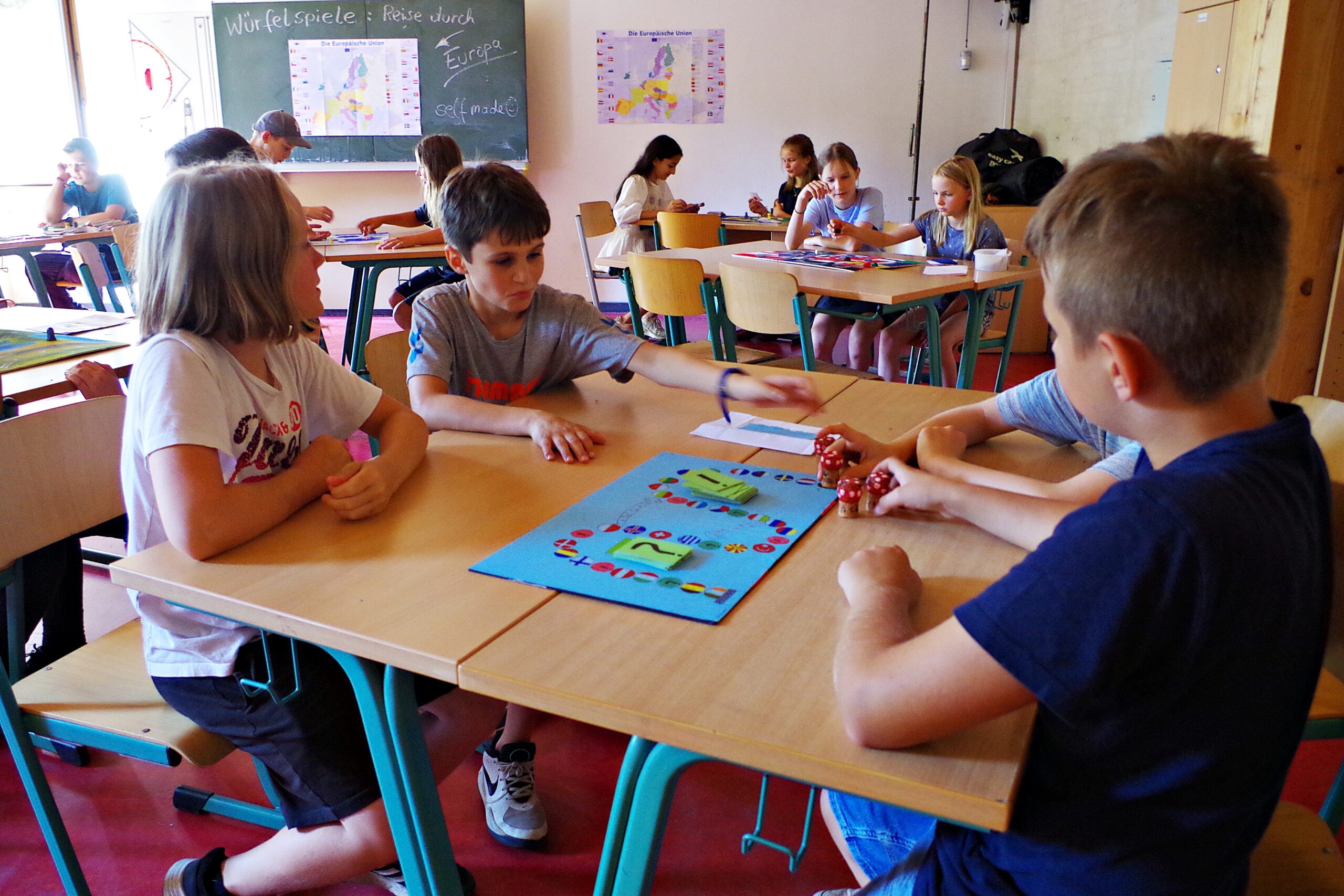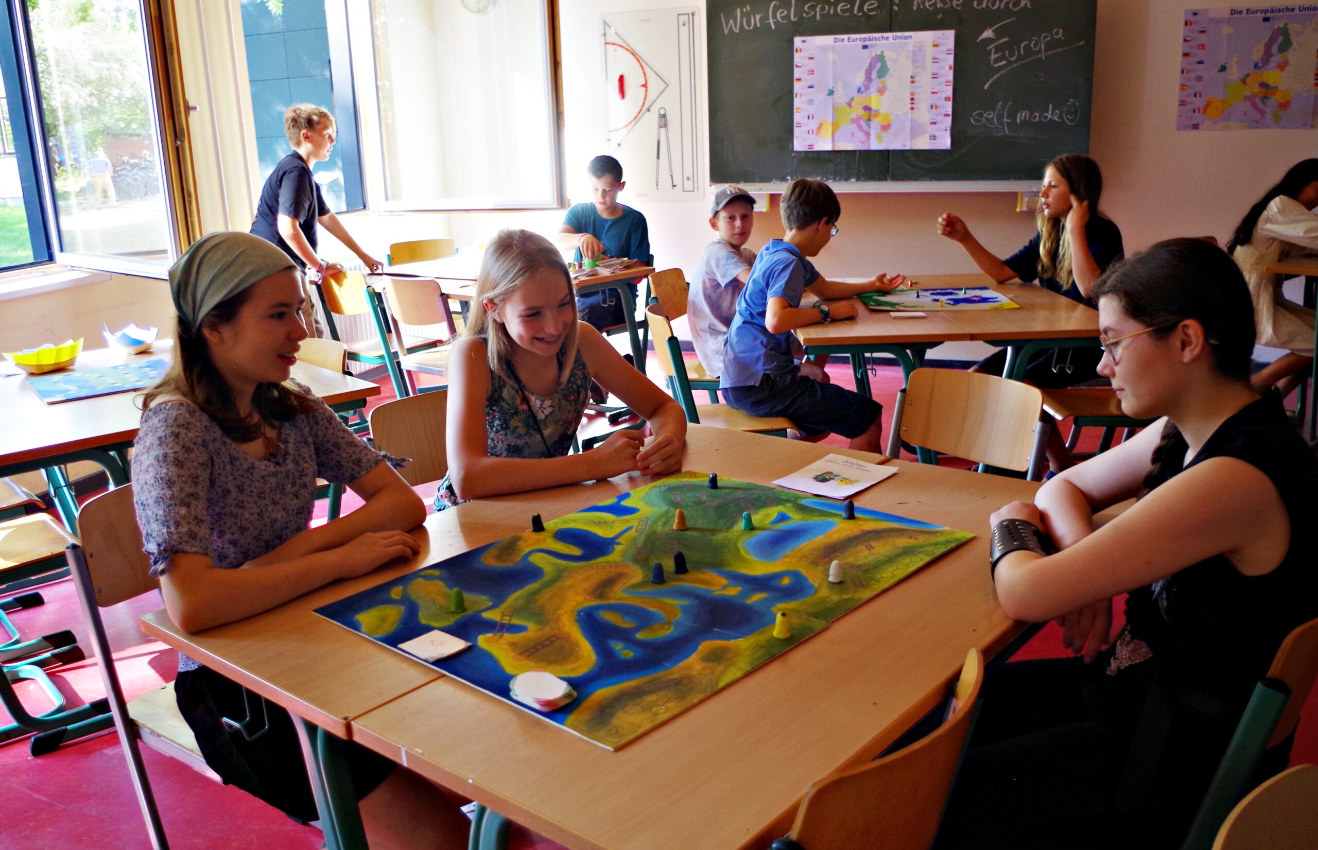Brett- und Würfelspiele zu Europa erstellen, hieß es in einem Projekt für Jüngere. Dadurch eigneten sich schon Orientierungsstufenschüler:innen Wissen über europäische Länder und deren Kulturen an, denn die Stationen und Fragen- und Antwortkarten entwickelten sie selbst.
