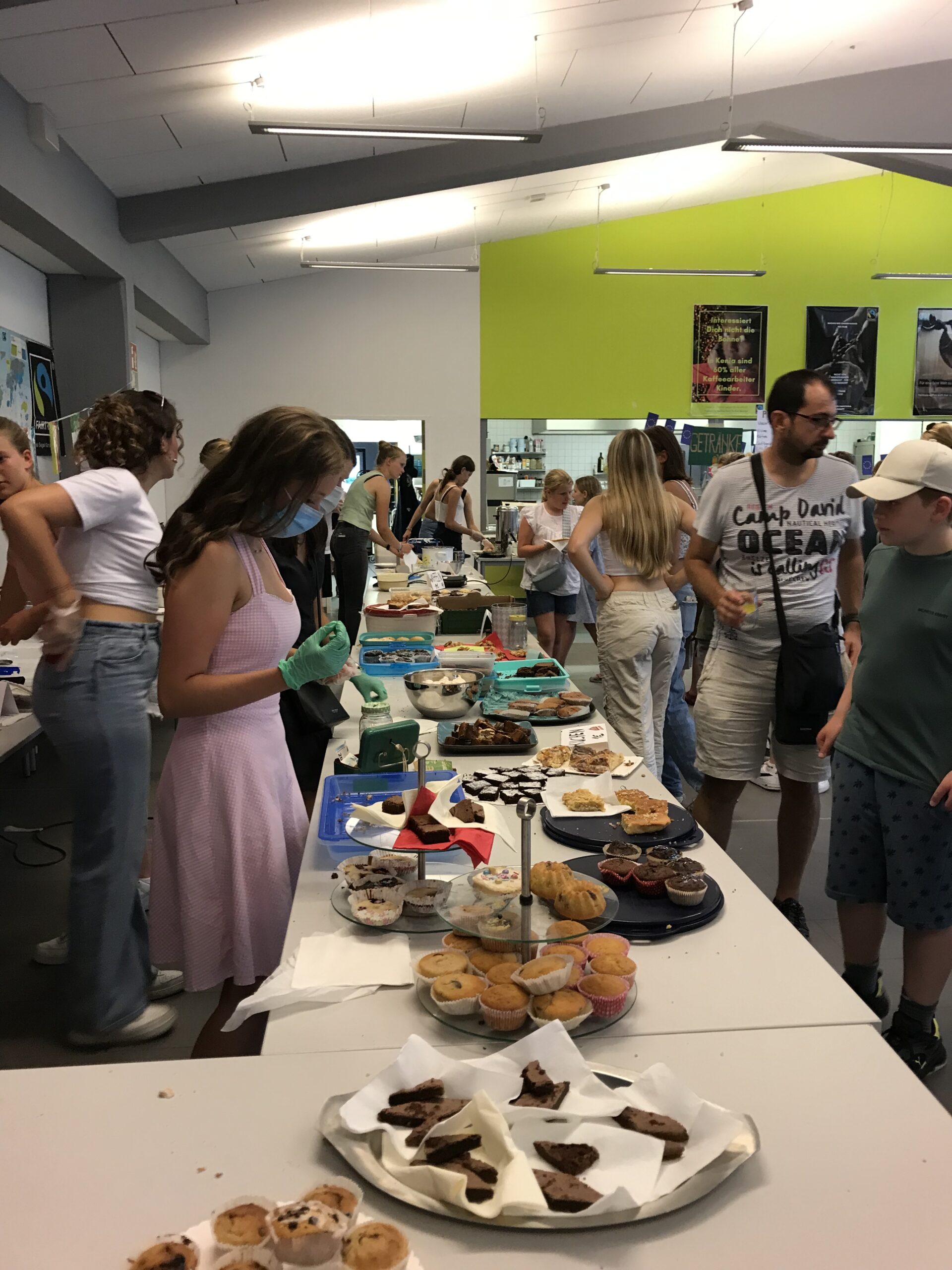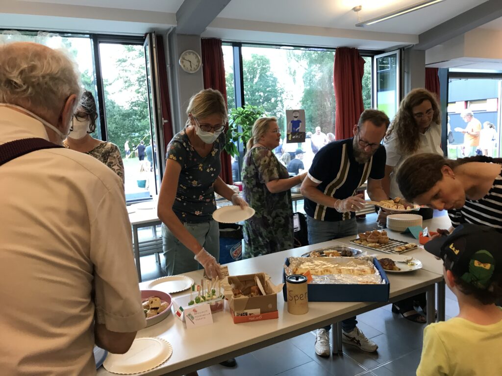 Während die Q2-Schüler:innen Kuchen und Getränke verkauften, um mit dem Erlös den Abiball mitzufinanzieren, hatten die Eltern ein herzhaftes Büffet auf die Beine gestellt. Beeindruckend, wie hoch auch hier das Engagement war!