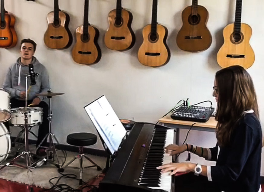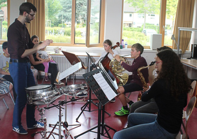 Im Musikraum war beispielsweise ein klassisches Instrumenten-Ensemble zu sehen und hören. Es besteht aus SchülerInnen verschiedener Klassenstufen und wird engagiert von Herrn Linde, Musikstudent, geleitet. Das Ensemble würde sich übrigens über weitere Zugänge sehr freuen…..