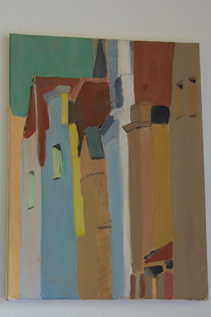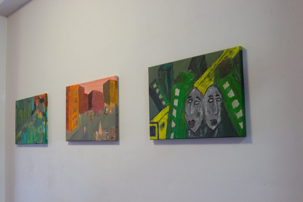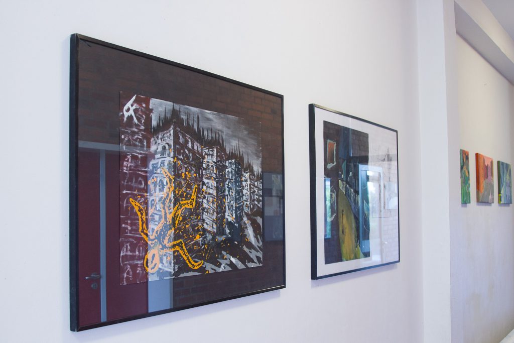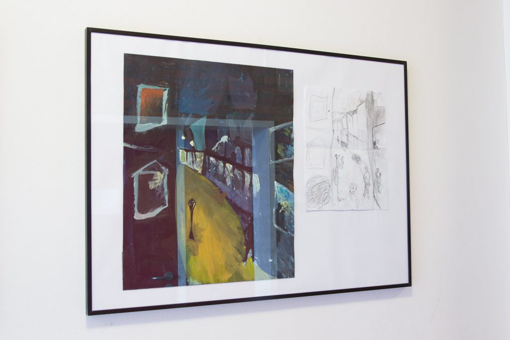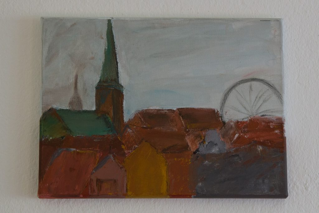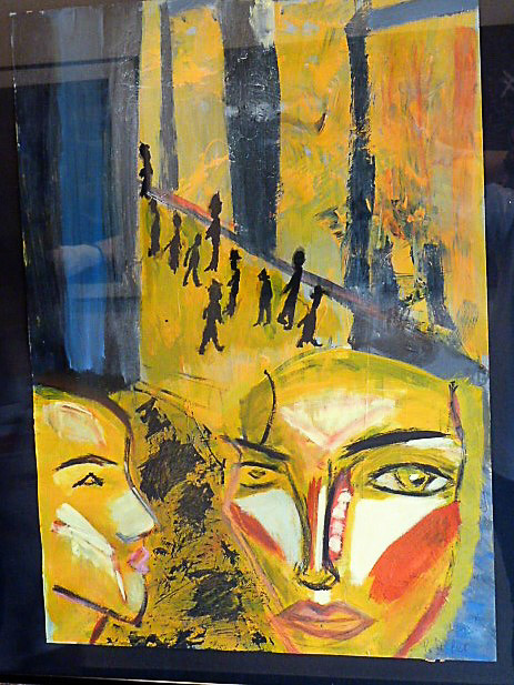 Auf dem Gang zur Europahalle stellten SchülerInnen des E- und Q1-Jahrgangs verschiedene Stadtlandschaften aus: Großstadtbilder in expressionistischer Bildsprache, angeregt von expressionistischen und aktuellen Gedichten und Texten sowie stimmungsvolle, malerische bzw. gedruckte Lübecker Stadtansichten.