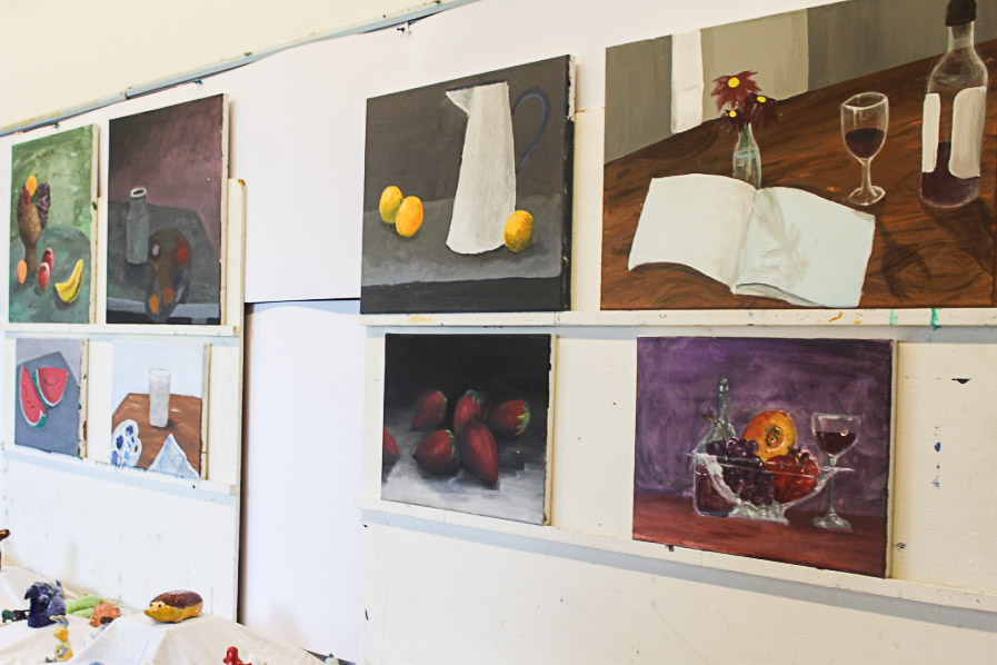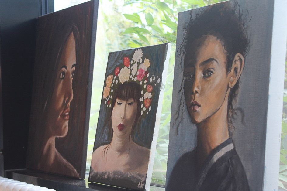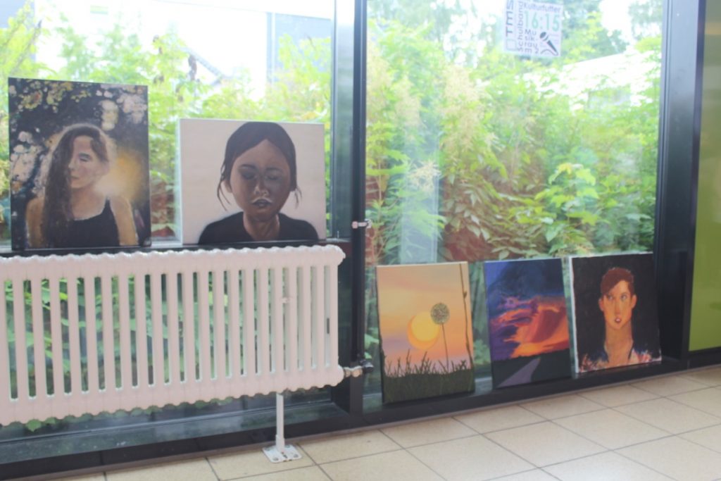 Das Ästhetische Profil des E-Jahrgangs und ein Q1-Kurs stellten ihre Ölmalereien aus. Zum Thema „Licht und Portrait“ arbeiteten sie in mehren Schichten, beobachteten intensiv die einzelnen Farbnuancen, Oberflächenstrukturen und das Lichtspiel auf ihrem Modell.