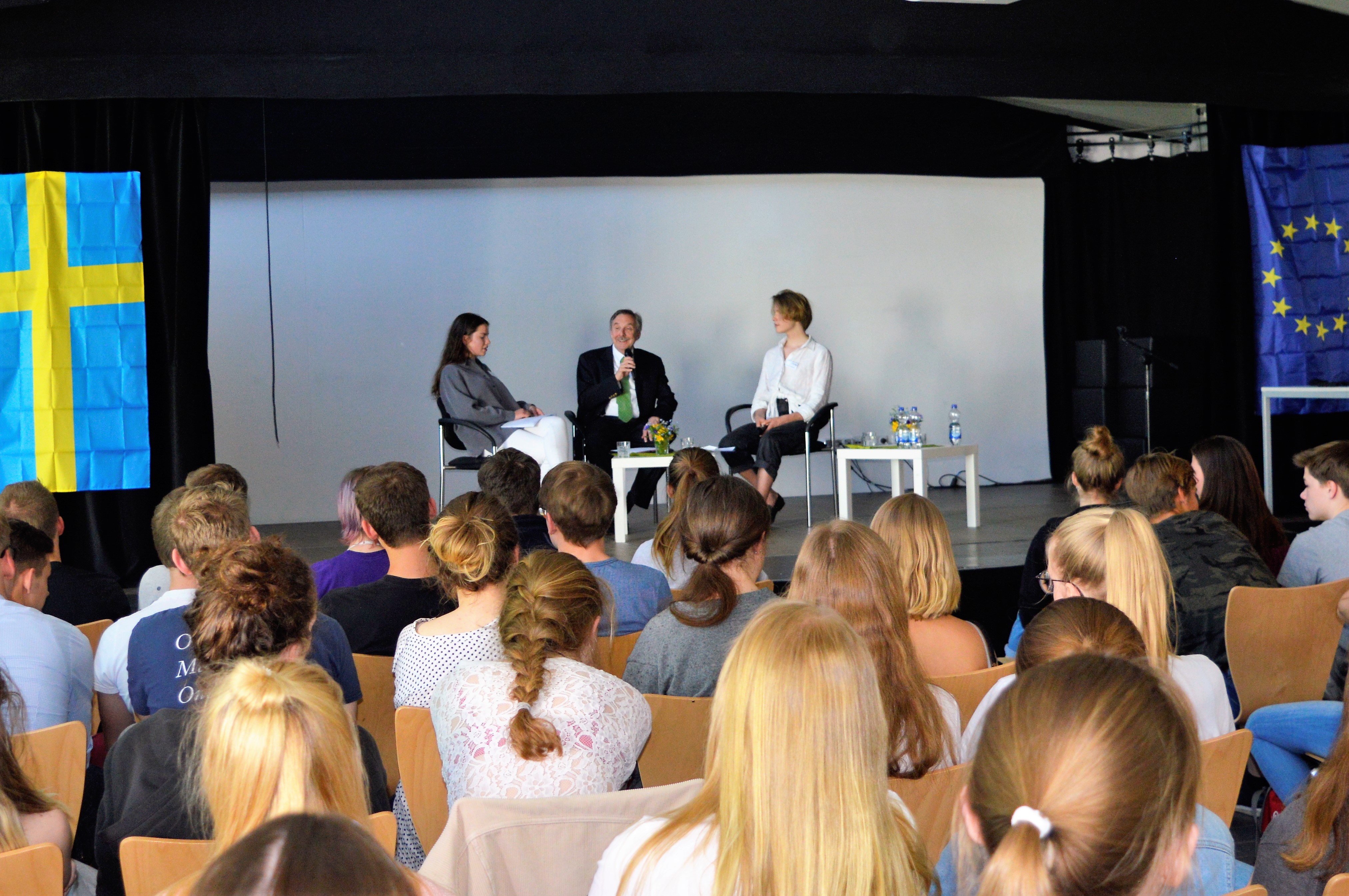 Ein Schüler fragte, wie es um das einst vorbildliche Bildungssystem Schweden bestellt sei. Der Botschafter erläuterte, warum Schweden bei der letzten PISA-Studie so schlecht abgeschnitten hat. Die Verantwortung für das Schulwesen ist auf die Kommunen übertragen worden und die Qualität hängt dann sehr von den finanziellen Möglichkeiten einer Gemeinde ab. Es gibt viele Privatschulen, die zwar vom Staat bezahlt werden, aber über die Unterrichtsinhalte selbst bestimmen. Die Curricula sind deshalb sehr unterschiedlich und entsprechen nicht immer den Standards.