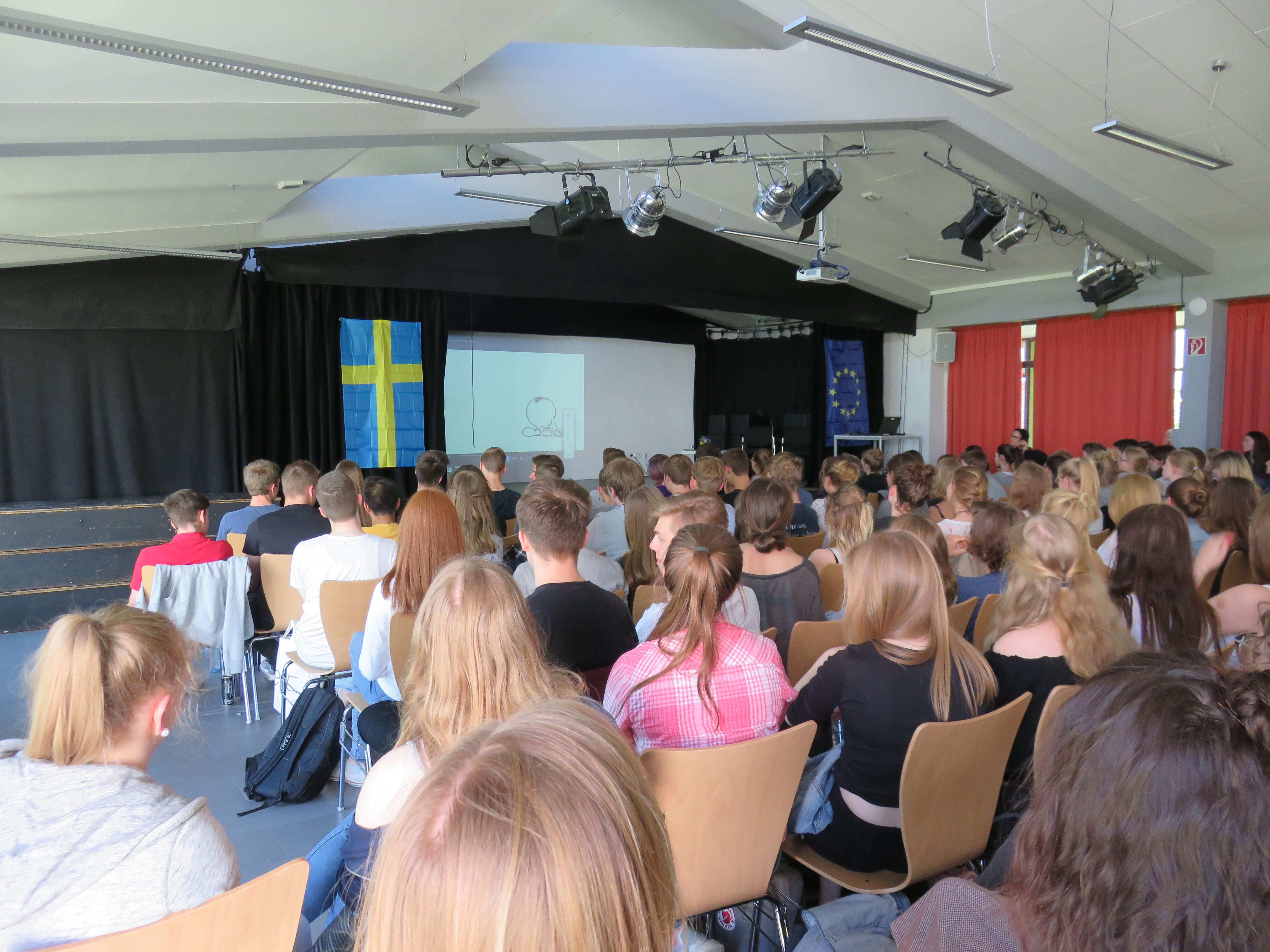„Wie funktioniert das schwedische Sozialsystem und kann Deutschland hier etwas lernen?“, wollte eine Schülerin wissen. Hier äußerte sich der Botschafter etwas zurückhaltender. Sicher funktioniere das schwedische Modell sehr gut, denn es garantiere für alle einen recht hohen Lebensstandard. Die Einstiegsgehälter seien hoch, die Gleichstellung von Mann und Frau weit vorangeschritten und die Versorgung mit Kitas besser als in Deutschland. „Aber mit dem schwedischen Gesundheitssystem ist es schwierig“, meinte der Botschafter, „denn ich bekomme keine Arzttermine und besondere Leistungen müssen extra bezahlt werden.“