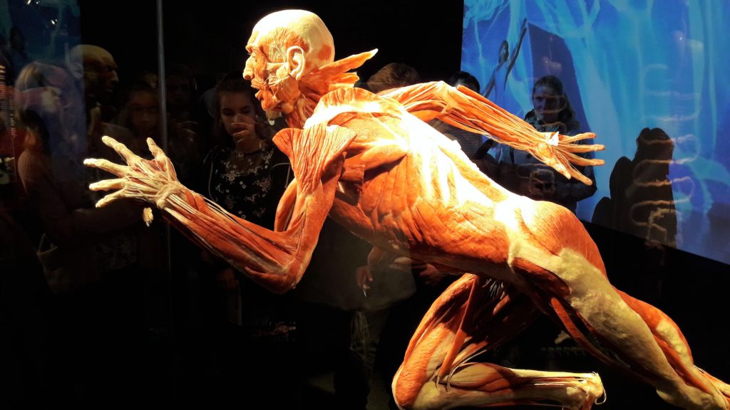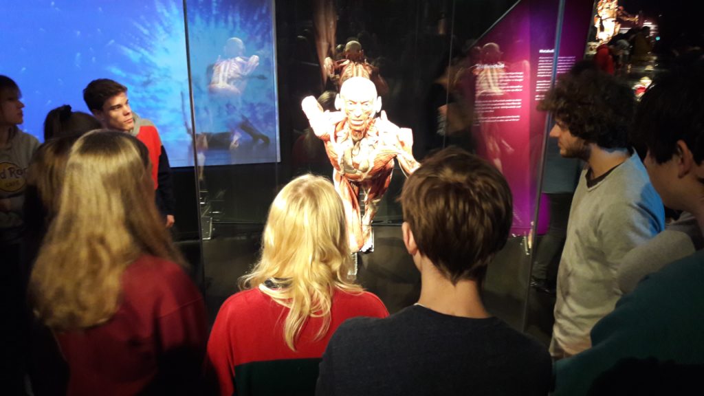 In der umstrittenen Ausstellung sind sogenannte Plastinate echter menschlicher Organe wie Muskulatur, Skelett, Herz, Lunge, Leber oder Blutgefäßsystem zu sehen, die von freiwilligen Spendern stammen und von dem Mediziner Gunther von Hagens in akribischer Arbeit plastiniert worden sind. Immer wieder aufs Neue bietet diese Ausstellung reichlich Diskussionspotenzial. Auch uns kamen ethische Bedenken, dennoch entschieden wir uns, das „Menschenmuseum im Dienste der Wissenschaft“ zu besuchen.