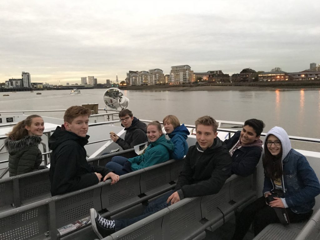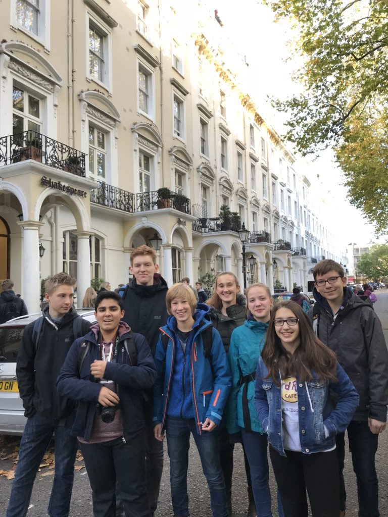 On a Sunday night in November we were picked up by bus at 3.45 am in front of the TMS. Our group (Rilana, Beyza, Niklas, Robin, Philipp, Karn and Jana accompanied by Ms Petzold) was very excited but at that time also very tired. So most of us slept while other students joined us at various stops (Hamburg, Bremen, Essen, Cologne). The bus drove through the Netherlands, Belgium and finally France where we took the ferry from Calais to Dover. It was so unbelievably stormy that we had to carry on the railing because otherwise we would have been blown over board :).