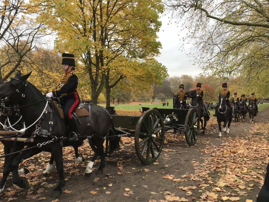 After a short photo-stop we continued walking to the science museum. There was no entrance fee but unfortunately some of the exhibits cost money. The museum was really interesting. They had exhibits about the history of communication, transport and space travels. After an hour in the museum we took the bus in the direction of the Buckingham Palace. Without knowing we walked to the gun salute for the Prince of Wales Charles who celebrated his 69th birthday.