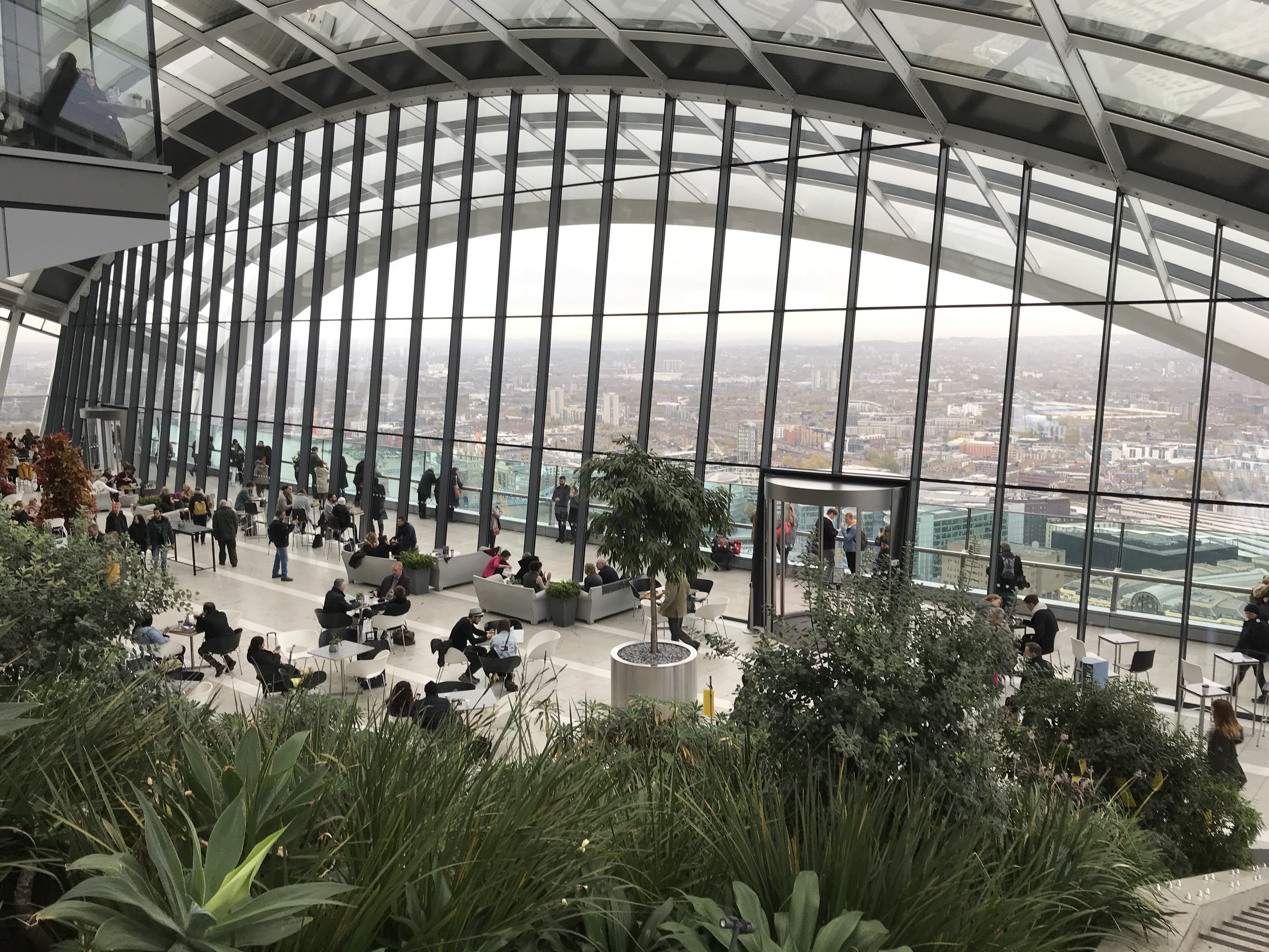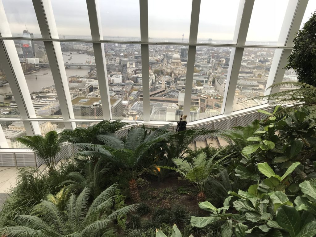 As many other people we stopped there and watched soldiers in uniforms firing the guns with choreography. Later they put the cannons on horse carriages and rode away. We followed the horse parade to the Bucking Palace. After taking plenty of pictures of the palace alone, the palace with us in front, just us … we walked on and went to the so called walkie-talkie. We were lucky that we booked a ticket the night before to get on top of the building to the sky garden otherwise it would have been impossible to do that as a group. The sky garden begins on the 35th floor. The walls are made out of glass so you have a 360° view over London. Also you can go outside at one side to get a better view. The whole group was impressed. We probably took even more pictures than at the Buckingham Palace.