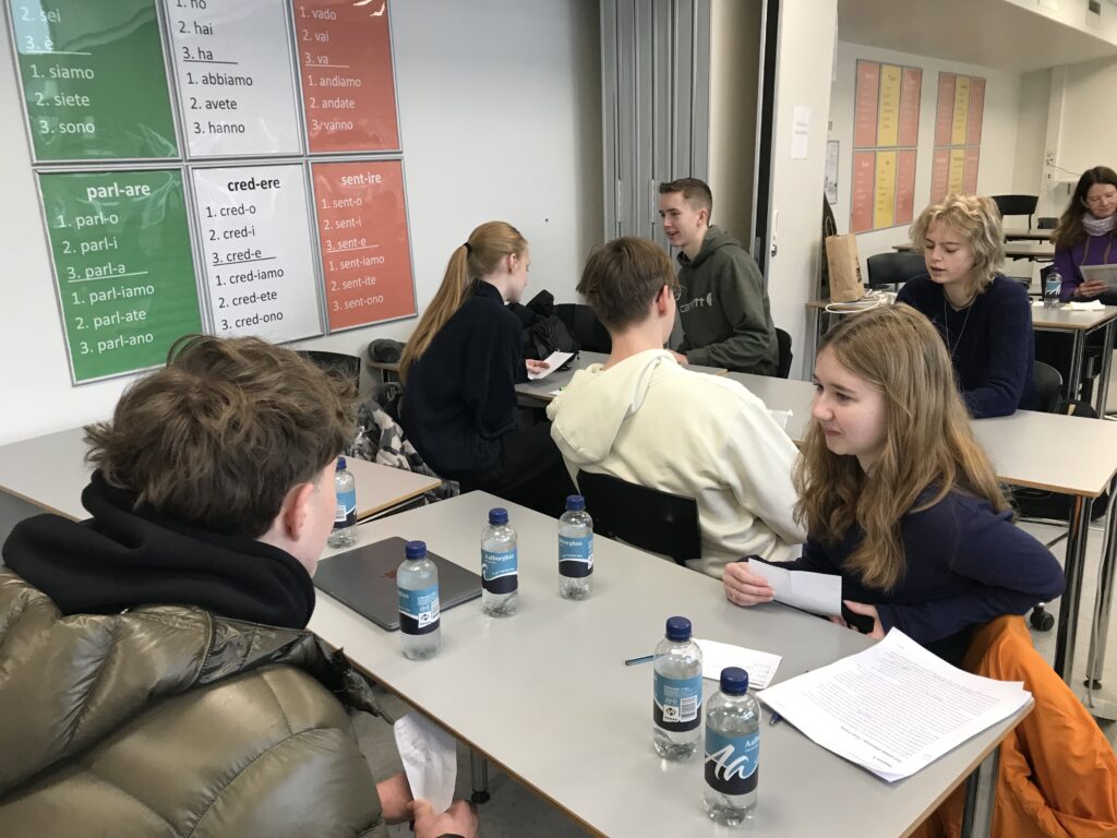 Wie an jedem folgenden Tag auch besuchten wir Unterricht an unserer Partnerschule. Wir nahmen teil an Deutsch- und Englischstunden und wurden vielfach miteinbezogen. So konnten wir einen guten Einblick in die Unterrichtsatmosphäre, den Stoff und die Methoden gewinnen. Im Deutschunterricht geschah der Einstieg in das Thema „Soziale Medien“ mit dem Song „Alles, was wir tun“ der Band Kafvka. Das Thema einer anderen Stunde war „Multikulturalität in Deutschland“. Hier wurde mit Kurzgeschichten und Interviews gearbeitet.