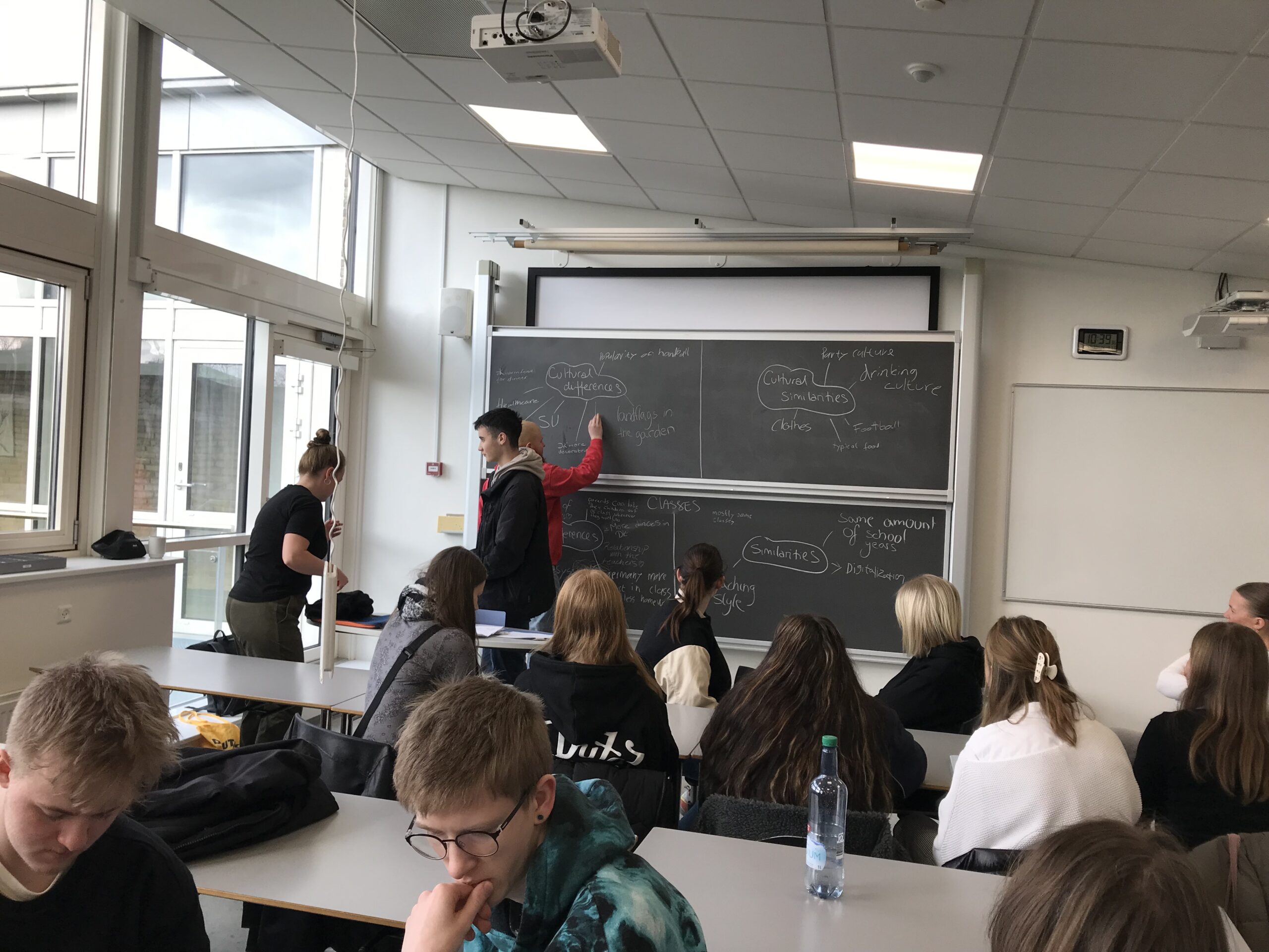 Durch diese vielen Eindrücke konnten wir am nächsten Tag die Frage beantworten, welche Gemeinsamkeiten und Unterschiede zwischen dänischem und deutschem Schulsystem sowie im Bereich der Kultur bestehen. In Stichworten notierten wir, was uns bisher aufgefallen war.