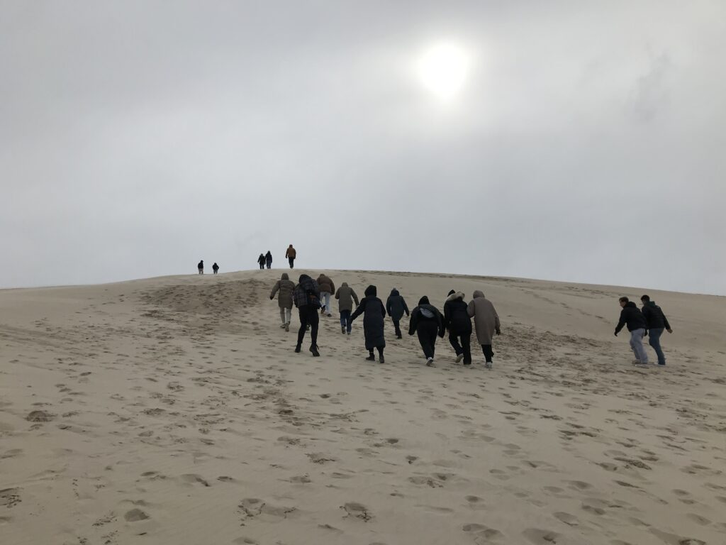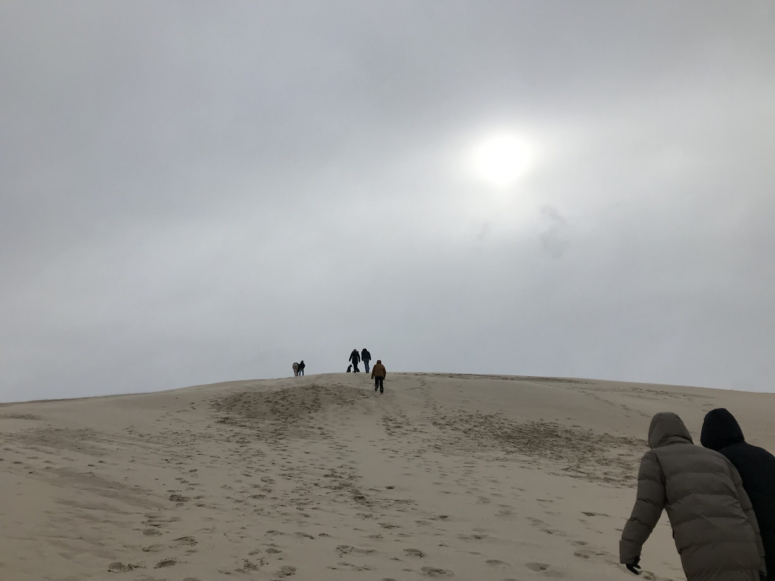 Bei der Råbjerg Mile handelt es sich um die größte Wanderdüne Dänemarks. Bei Sturm und Eiseskälte kämpften wir uns durch den Sand bis zur Spitze, von der man einen wolkenverhangenen Ausblick auf die karge, heidebewachsene Umgebung hat.