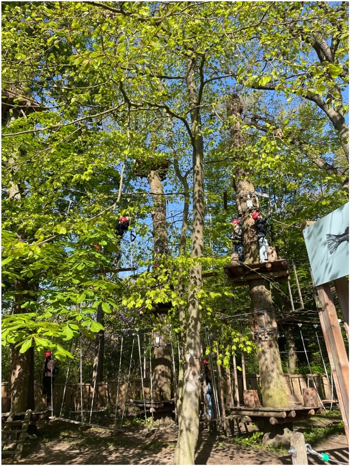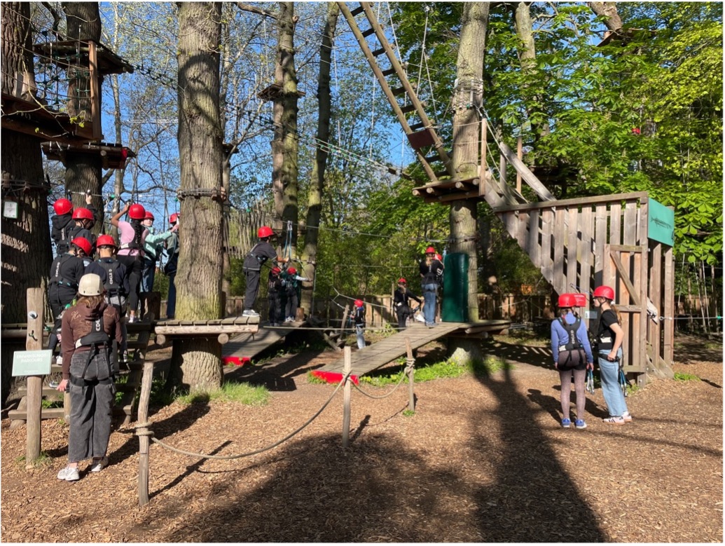 Als Gewinner des Verschönerungswettbewerbs im Februar wurde der Klasse 6d ein zusätzlicher Wandertag zuteil – eine verdiente Belohnung für ihr besonderes Engagement. So brach die Klasse am Montag nach den Ferien bei strahlendem Frühlingswetter in Richtung Travemünde auf, um dort einen erlebnisreichen Tag im Kletterwald zu verbringen.