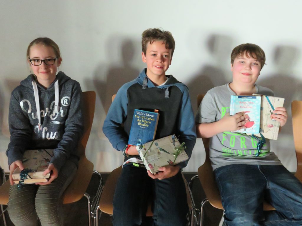 Schließlich stand die Entscheidung fest: Immanuel, Line und Marten wurden als die drei besten Leser für ihren Einsatz mit einem Buch belohnt.