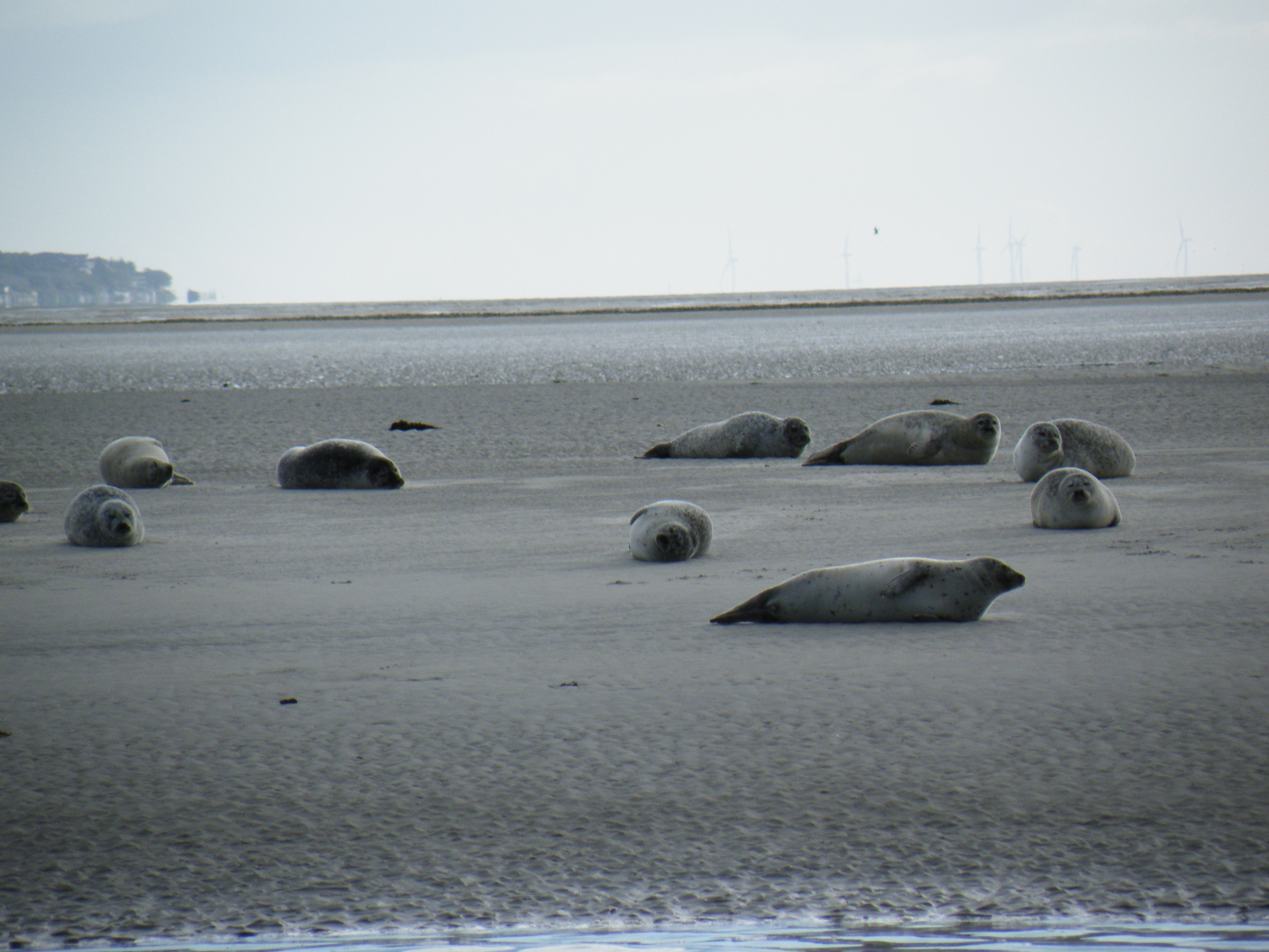 Ein Schiffsausflug brachte uns zu den Seehundbänken. Dort liegen die Seehunde bei Ebbe, sonnen sich und sorgten für Entzücken, so dass in vielen Kameras verschiedene Bilder von ihnen zu sehen sind.