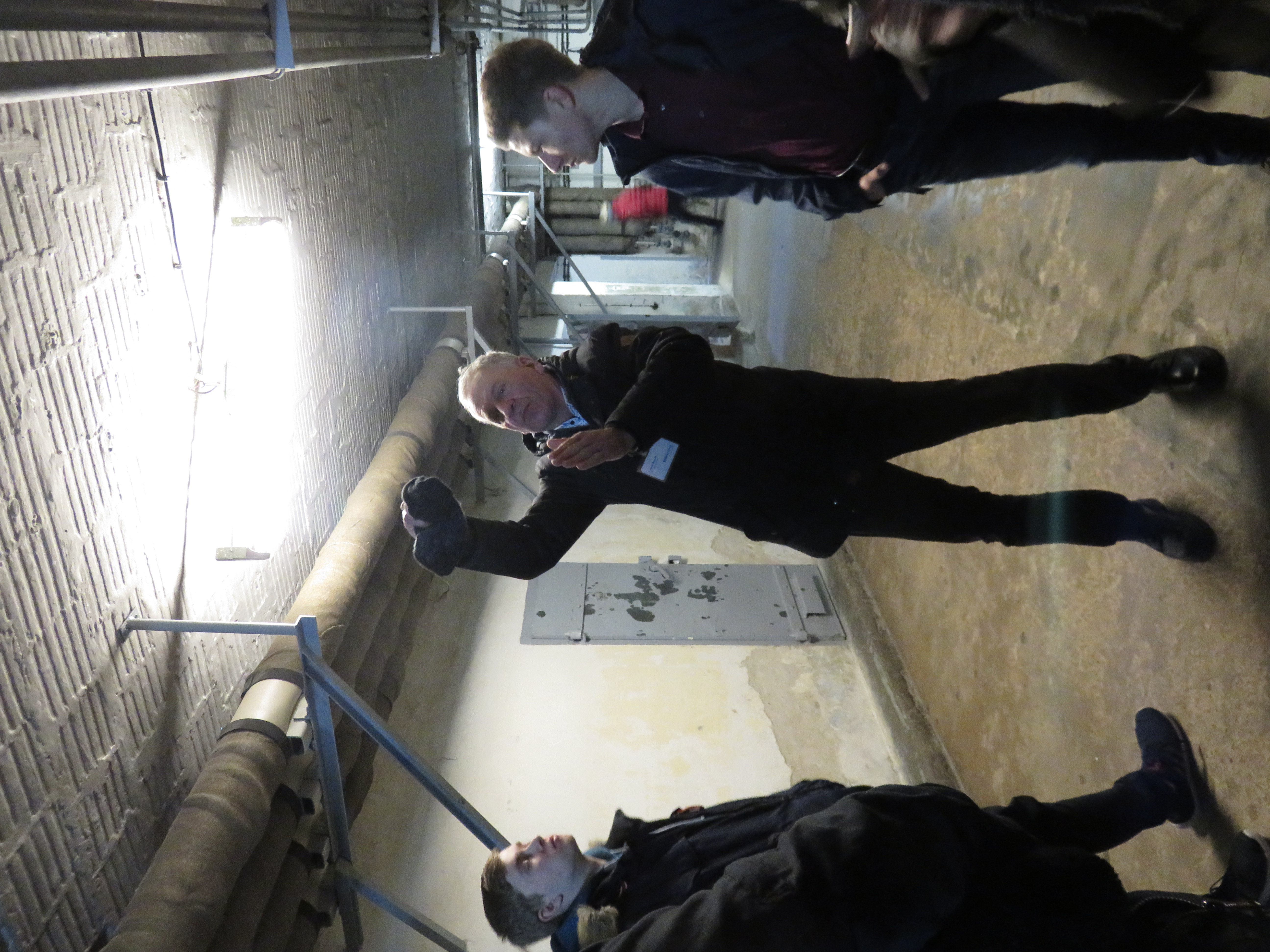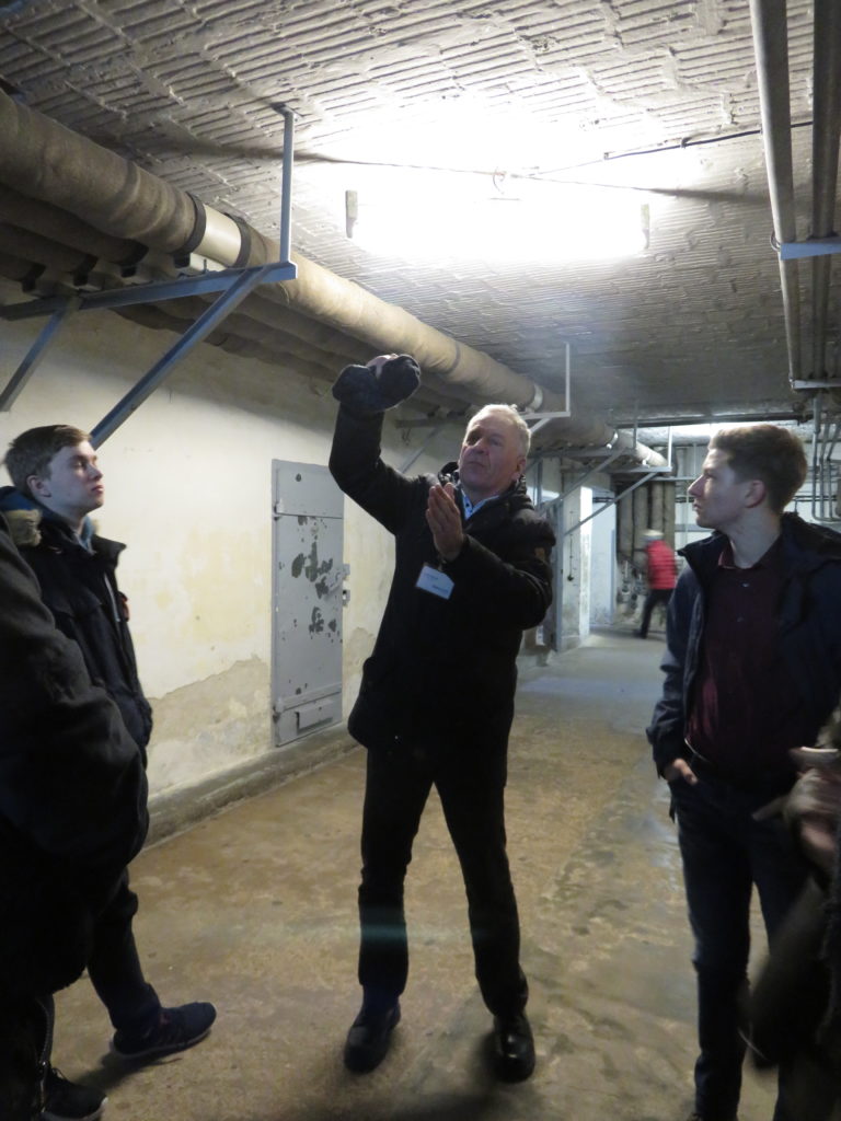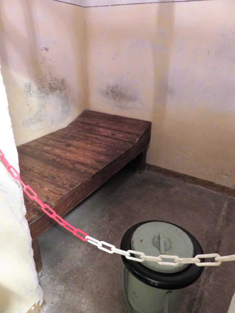 Am Donnerstagmorgen knüpfte der Besuch im ehemaligen Stasi-Gefängnis Hohenschönhausen an die Thematik der deutschen Teilung an. Sehr anschaulich berichteten zwei ehemalige Häftlinge unserer geteilten Gruppe von der Geschichte des Gefängnisses, von ihren Erfahrungen mit der DDR-Diktatur und Erlebnisse in der Haft. Unmittelbar nach Kriegsende wurden zunächst Angehörige des Nazi-Regimes von den Sowjets als Kriegsgefangene inhaftiert, bald darauf kamen die Gegner der SED und des kommunistischen Regimes hier in Untersuchungshaft. Im Untergeschoss des ältesten Traktes, im sogenannten „U-Boot“, wurden die kleinen Fenster völlig verschlossen, so dass die Gefangenen kein Tageslicht mehr bekamen. Das elektrische Licht brannte aber bei Tag und Nacht, damit die Insassen besser kontrolliert werden konnten. Die Einzelhaft in winzigen Zellen, die vorgeschriebene Schlafhaltung während der Nacht, das Schlafverbot bei Tag und die absolute Reizarmut führte bei vielen Inhaftierten zu Zusammenbrüchen bei den Verhören und langfristig zu posttraumatischen Störungen. Der Druck auf die Gefangenen war zunächst von Gewalt geprägt; später wurden die Methoden durch gezielte Schulungen psychologisch so verfeinert, dass die Opfer sogar das Verhör durch Stasi-Offiziere als angenehm empfanden.