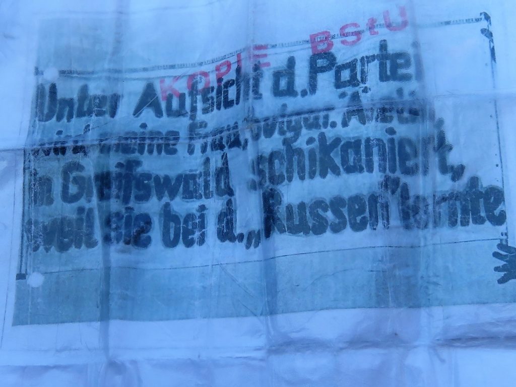 Der Besuch wird uns sicher auch deshalb unvergesslich bleiben, weil Lothar Schulz, unser Begleiter durch die Gedenkstätte, sein persönliches Schicksal mit großer Inbrunst erzählte. Seine Karriere als junger, leistungsfähiger Ingenieur für Reaktorsicherheit mit Aussicht auf Forschungsaufenthalte in Moskau endete abrupt, als er nicht in die SED eintreten wollte. In den 70er Jahren blieb ihm nur der Ausweg, seine Inhaftierung zu provozieren, in der Hoffnung, dass ihn die BRD freikaufen würde. Minutiös plante er in Rostock seine Aktion, fuhr im Sommer 1978 nach Ost-Berlin und enthüllte auf dem Alexanderplatz ein großes Plakat, auf dem er die Schikanen gegen seine bulgarische Frau in einer Klinik anprangerte. Innerhalb von Sekunden wurde er verhaftet, aber westdeutsche Touristen hatten alles fotografiert und die Fotos erschienen am nächsten Tag in der westdeutschen Presse, woraus dann der Hauptanklagepunkt konstruiert wurde. Es folgten 19 Monate Haft und die Entlassung in die DDR, denn ein Sperrvermerk in seiner Akte hatte den Freikauf verhindert, wie Schulz erst nach der Wende aus seiner Stasi-Akte erfuhr. Als er 1980 eine neue Aktion plante und die Stasi davon durch ein abgehörtes Telefonat erfuhr, stellte er für die Behörden ein Sicherheitsrisiko dar und man ließ ihn und seine Frau in den Westen ausreisen.