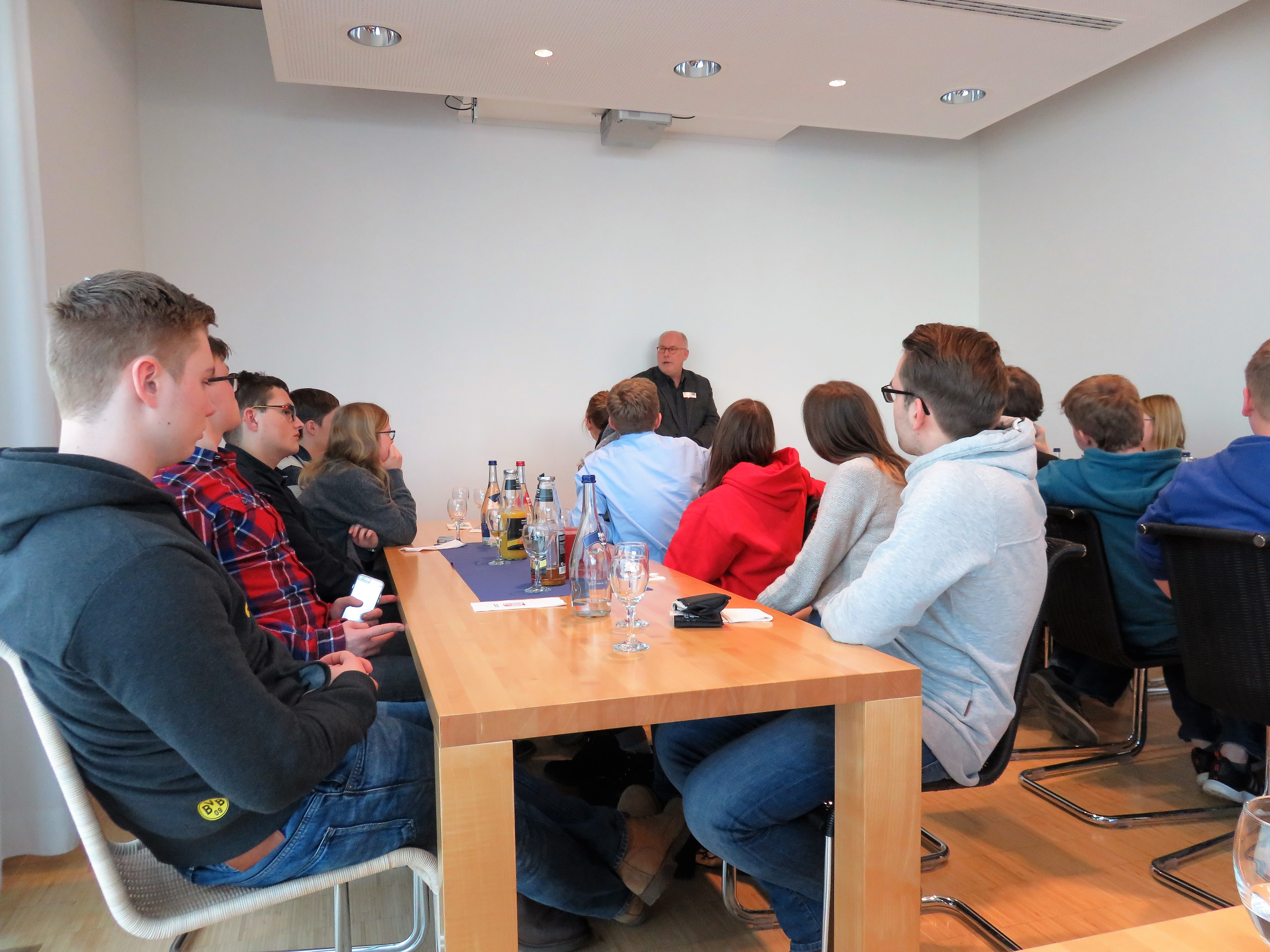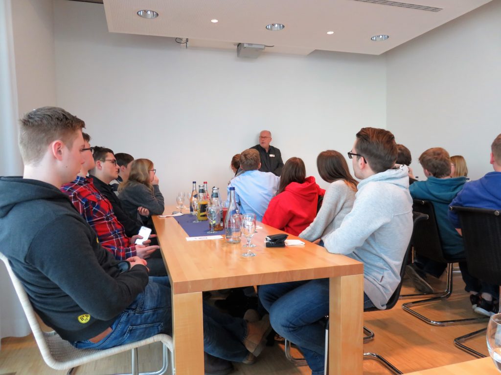 Herr Klinks engagierter Vortrag über seine teilweise harten Erfahrungen in autokratischen oder armen Staaten, aber auch über seine Erfolge bei der Bewältigung der Flüchtlingskrise in der Zentralafrikanischen Republik motivierte viele unsere Schülerinnen und Schüler, über diese Berufslaufbahn nachzudenken. Wie auch bei den anderen Veranstaltungen dankte die Gruppe dem Referenten mit der Überreichung eines Lübeck-Bechers. Der Besuch im Auswärtigen Amt war sicher einer der Höhepunkte dieser bereichernden Fahrt.