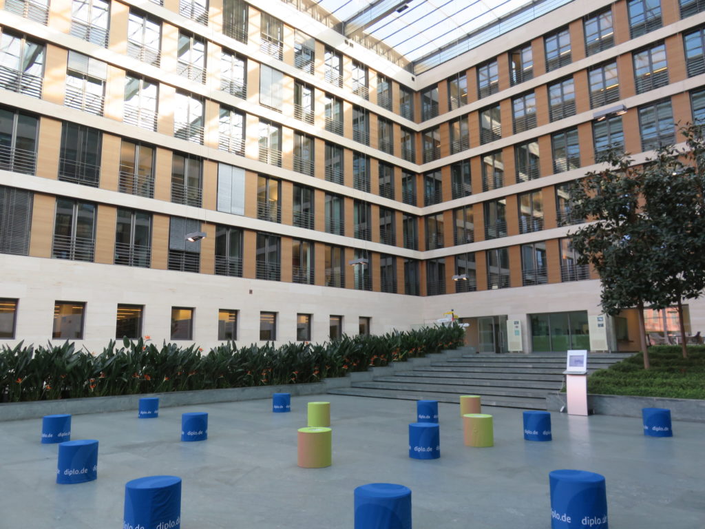 Unser letzter Programmpunkt war der Besuch des Auswärtigen Amtes, wo uns der leitende Mitarbeiter verschiedener Botschaften und Afrika-Experte Hubertus Klink humorvoll und sehr anregend einen Einblick in die Aufgaben des Auswärtigen Amtes im Allgemeinen und die Anforderungen an die Diplomaten im Besonderen gab. „Das Auswärtige Amt hat Schwierigkeiten, geeignete Bewerber zu finden“, meinte er bedauernd und erläuterte die Gründe. Für die Familien der Diplomaten stehe alle drei bis fünf Jahre der Umzug in ein neues Land an. Die Kinder müssten die Schule wechseln und neue Freunde finden, der Ehepartner müsse den Arbeitsplatz aufgeben und habe u.U. Schwierigkeiten, einen neuen zu finden. Hinzu käme häufig eine angespannte Sicherheitslage, so dass ein umfangreicher Personenschutz die Bewegungsfreiheit und das Privatleben einschränke. Er selbst werde im Sommer wieder eine Stelle in einer Botschaft übernehmen, wisse jetzt Anfang März aber noch nicht, in welchen Staat er abgeordnet werde. Diese familiären Probleme und die geforderte Flexibilität schrecken heutzutage viele junge Leute ab.