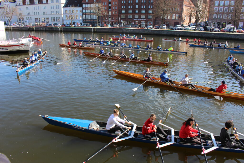 Eine volkssportliche Tradition der Wassersportlerinnen und Wassersportlern ist das Anrudern, Anpaddeln und Ansegeln zum Auftakt der neuen Saison. Die Ruderer und Ruderinnen aller Altersgruppen und Vereine aus Lübeck trafen sich um 10:30 Uhr vor derm Raddison an der Untertrave, wo die Brass Band der Freiwilligen Feuerwehr aus Bad Schwartau für gute Laune sorgt. Das schöne Wetter sorgte mit 24 Großbooten für einen neuen Teilnehmerrekord.