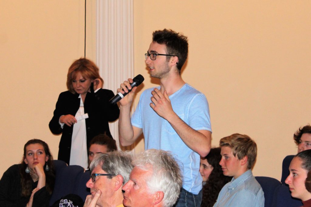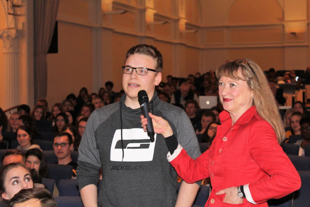 In den letzten 20 Minuten erhielten die rund 500 Schülerinnen und Schüler der Friedrich-List-, Emil-Possehl-, Hanse-, Ernestinen- und der Thomas-Mann-Schule, die im Publikum saßen, die Gelegenheit, weitere Fragen an die Politiker zu richten. Lasse (Q1a) adressierte seine Frage direkt an den Vertreter der SPD.