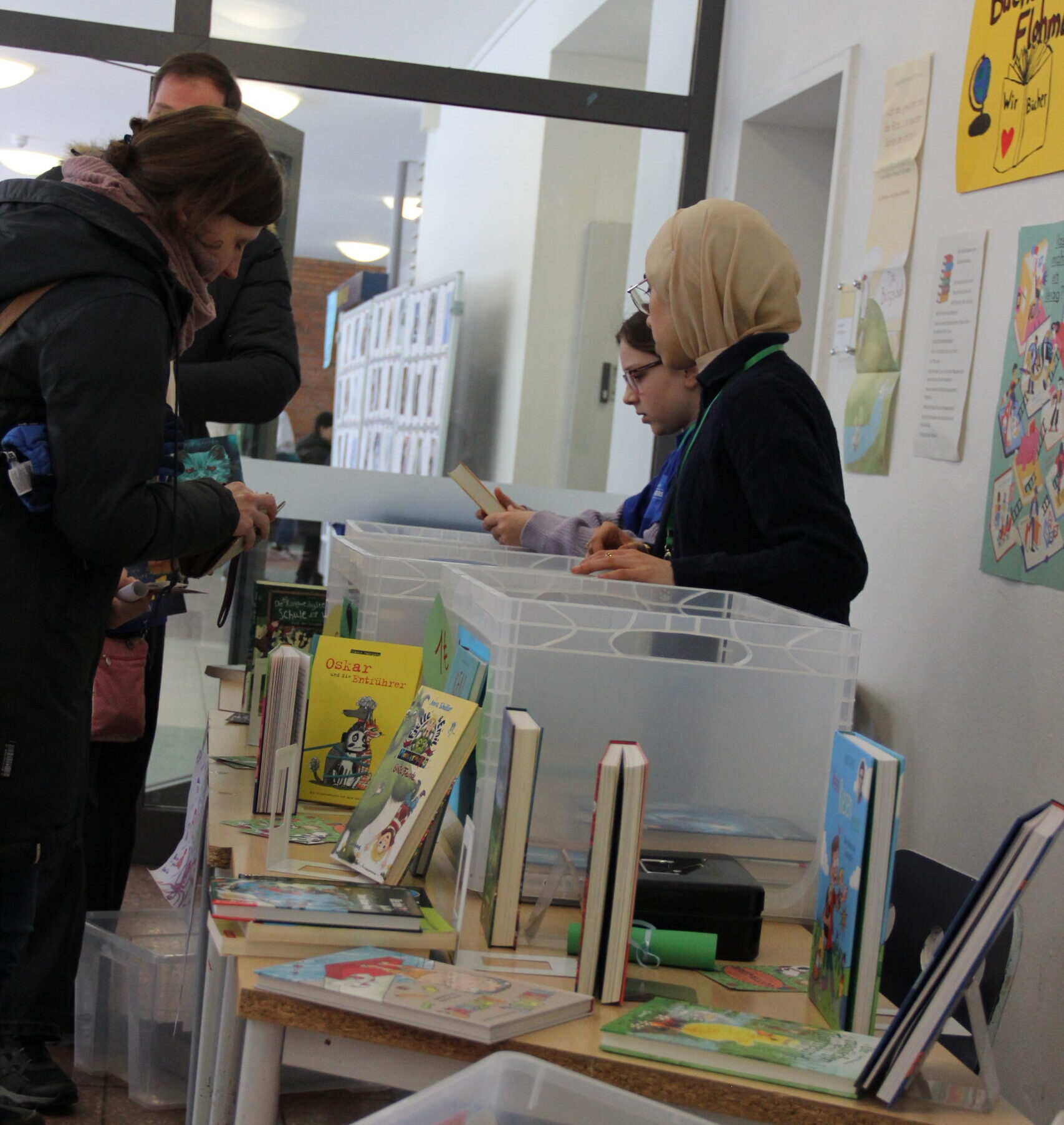 Umlagert waren auch der Bücherflohmarkt der Literatur-AG mit Frau Koschel, die Komplimente-Werkstatt und der Crêpes-Verkauf im Französisch-Raum.