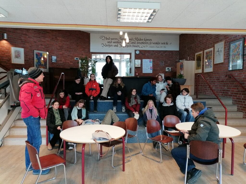 Los ging es am Donnerstag, dem 9. Februar. Wir trafen uns alle in der Eingangshalle des Lübecker Hauptbahnhofs. Von dort aus sind wir mit dem Zug nach Scharbeutz gefahren und sind dann die knapp drei Kilometer nach Klingberg zu Fuß gegangen. Dort angekommen, haben wir uns erst einmal in unsere Zimmer einquartiert und anschließend gab es auch schon eine erste Chorprobe. Während dieser haben wir allerdings noch gar nicht gesungen, zuerst gab es eine Vorstellungrunde und anschließend zwei Spiele. Wir kommen aus unterschiedlichen Klassen und unterschiedlichen Jahrgängen, von daher mussten auch wir uns erst einmal besser kennenlernen. Anschließend gab es Mittagessen und noch etwas Freizeit. Später am Nachmittag gab es eine zweite Chorprobe, in dieser haben wir mit einem neuen Song angefangen und haben außerdem an einem weiteren Stück gearbeitet. Hier merkte man endlich mal richtige Fortschritte, denn regulär haben wir immer nur eine halbe Stunde Probenzeit in der Woche, auf der Fahrt konnte wir wesentlich intensiver und länger an einzelnen Liedern arbeiten. Abends gab es wieder Freizeit und viele Motivierte versammelten sich zum Karaoke-Singen, was sehr viel Spaß machte.