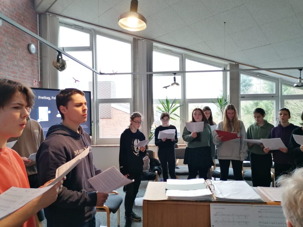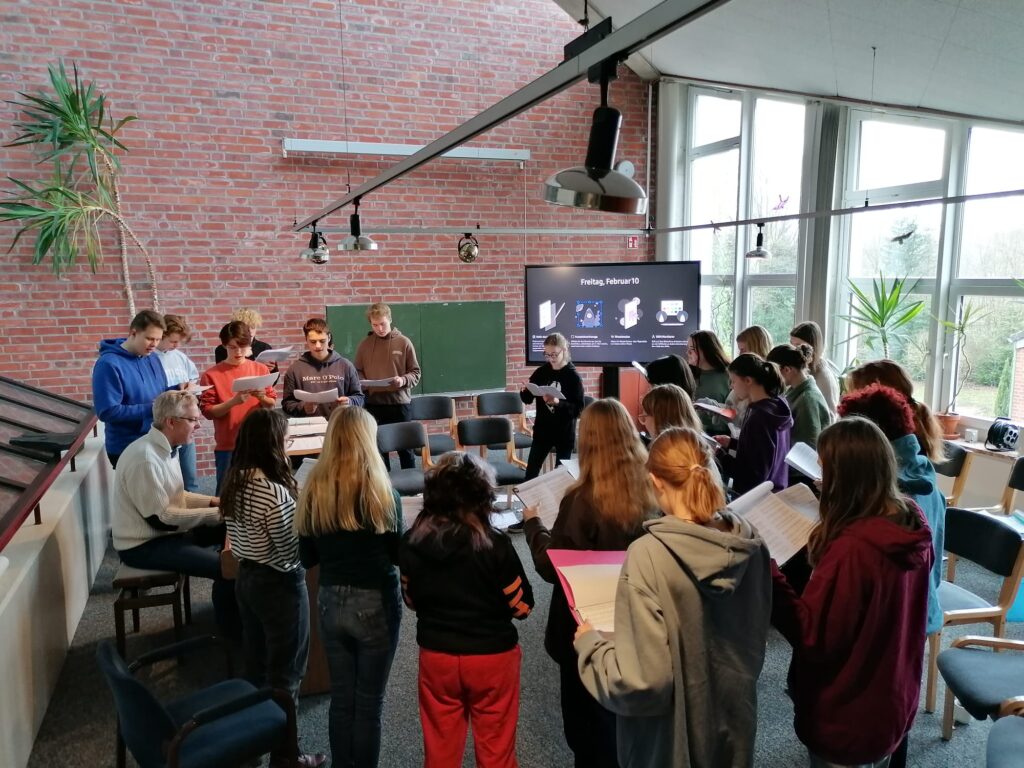 Im Sommer 2022 fing der Schulchor nach über zwei Jahren Zwangspause wieder unter der Leitung von Herrn Kracke an zu proben. Nach dem Auftritt beim Weihnachtskonzert im Dezember stand für uns 25 Sängerinnen und Sänger aus den Jahrgängen 7 bis 11 nun ein weiteres Highlight an: Für drei Tage fuhren wir in die Jugend- und Bildungsstätte Klingberg und genossen eine Zeit voller aufregender musikalischer und persönlicher Erfahrungen.