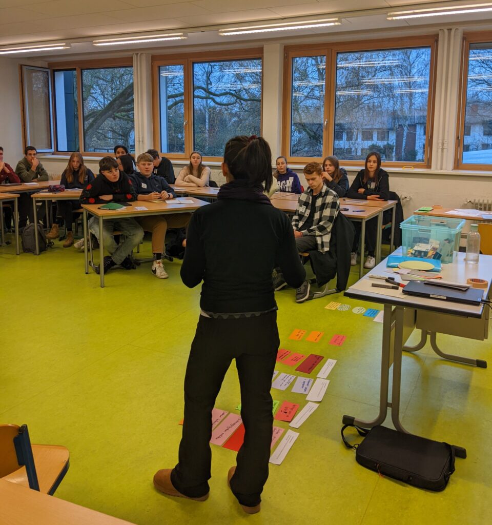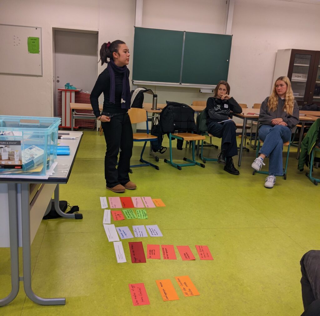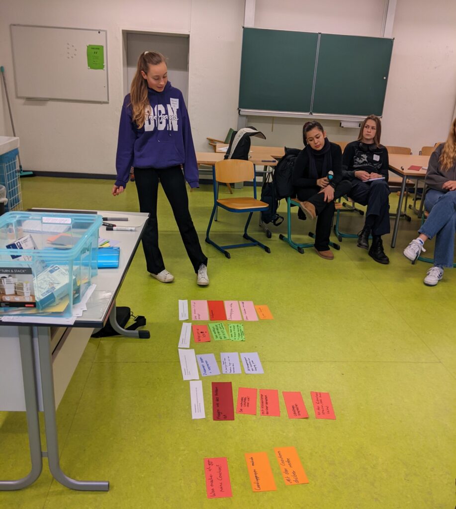 Langsam neigt sich das Jahr dem Ende zu und auch die Coachingausbildung ist fast abgeschlossen. 30 Schülerinnen und Schüler aus dem E-Jahrgang haben sich für die Ausbildung zum Schülercoach im Rahmen ihres Gemeinschaftsdienstes entschieden. Seit Oktober lernen sie in mehreren Modulen, wie man als Schülercoach arbeitet. Dort lernen sie nicht nur den Umgang mit den zukünftigen Coachees aus den 7. Klassen, sondern auch vieles über Kommunikations- und Lernstategien. Im Januar ist es dann endlich soweit und sie lernen ihre Coachinggruppen kennen. Bis zur Klassenstufe 9 werden sie dann regelmäßig mit ihren Gruppen zusammen an verschiedenen Themen, wie Anliegen ansprechen, Selbstbewusstsein, Freundschaft, Zielsetzungen fürs Halbjahr, etc. arbeiten.