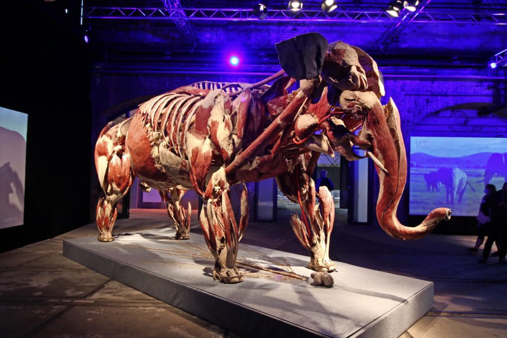 Die Ausstellung endet mit Plastinaten verschiedener Tiere, unter anderem einem lebensgroßen Elefanten.