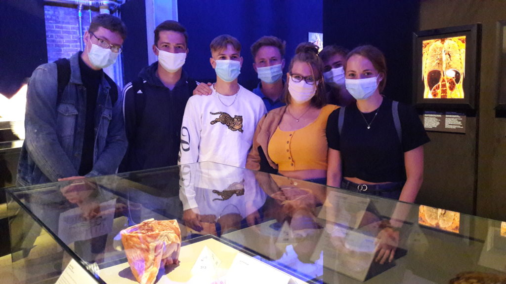 Am Mittwoch, den 02.09.2020, besuchte der Biokurs aus Schülerinnen und Schülern der Q1a, Q1b & Q1c gemeinsam mit Frau Milanesi die KÖRPERWELTEN Ausstellung in der Kulturwerft Gollan. In dieser werden viele wichtige biologische Themen veranschaulicht und erklärt – von der Anatomie des menschlichen Körpers, über den Zyklus des Lebens bis zu tierischen Exemplaren.