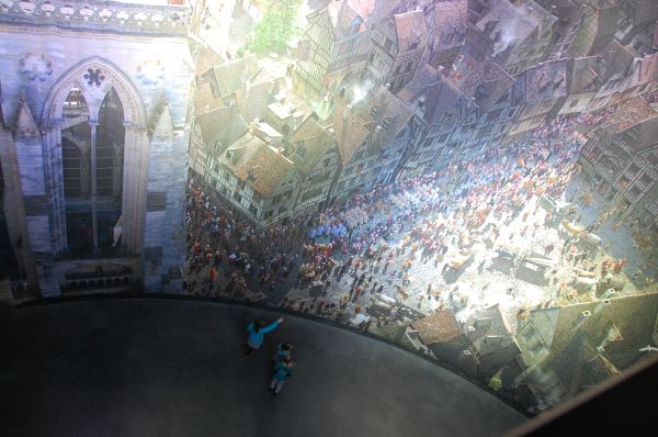 Der geplante Besuch der normannischen Küste (Etretat und Honfleur) fiel buchstäblich ins Wasser und es wurde kurzfristig beschlossen, trocken zu bleiben und das Panorama XXL in Rouen zu besichtigen. In einem eindrucksvollen 360-Grad-Panorama, sozusagen in einem Riesenrundbild, von ca. 30 Metern Höhe, das bei bestimmtem Licht fast dreidimensional wirkt, wird der Besucher in das mittelalterliche Rouen geführt.