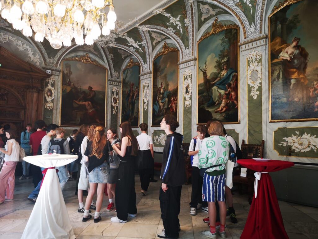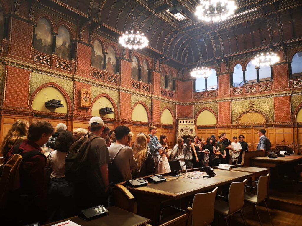 Unser Austauschtag am Dienstag begann um 9:45 Uhr vor dem Rathaus in der Lübecker Innenstadt. Dort trafen wir uns, um gemeinsam mit dem Bürgermeister eine Führung durch das historische Gebäude zu machen. Bevor es losging, wurden wir herzlich empfangen – es gab reichlich Marzipan und ein paar Getränke zur Stärkung.