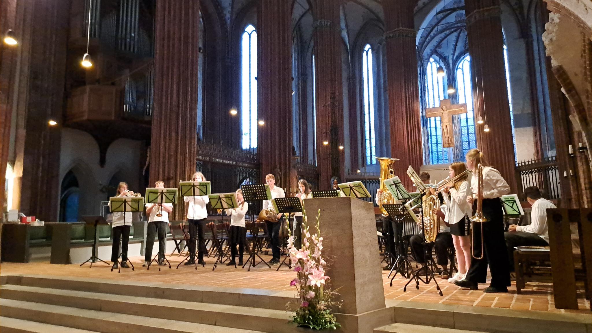 Brassband spielt in der Marienkirche zum UN-Weltfriedenstag