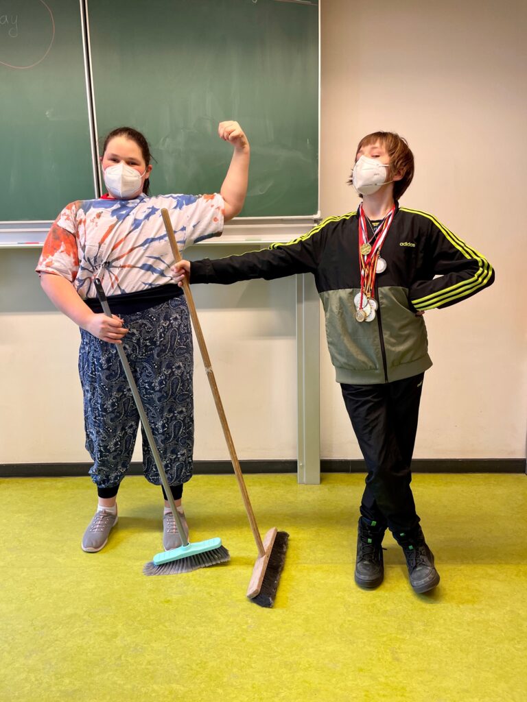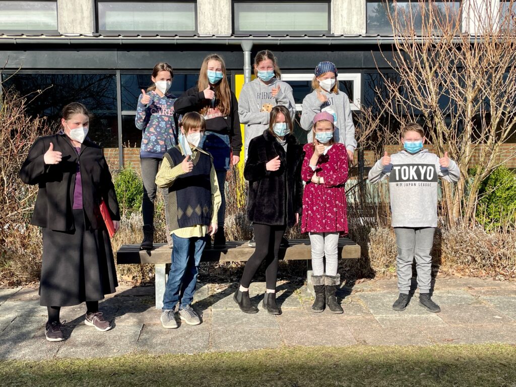 Auch wenn das Ergebnis nun am Ende kein 1. oder 2. Landespreis ist, so muss man ohne Zweifel sagen, dass alle Teammitglieder, Frida, Josephine, Amelie, Nele, Tacy, Asya, Charlotte, Colin und Oskar ein ganz besonderes Lob verdient haben! Den Anerkennungspreis der Landesjury haben sie zu Recht erhalten, sie waren trotz Masken stets motiviert bei der Sache und haben auch sprachlich Tolles geleistet!