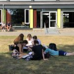 Endlich wieder zusammen! Bei hochsommerlichen Temperaturen arbeiten die Schüler und Schülerinnen der Klasse Q1b gemeinsam an ihren Aufgaben – im Freien. Bei einem lauen Lüftchen im Schatten rauchen nur die Köpfe und Aerosole haben keine Chance. Text: Mechthild Piechotta Fotos: Dr Meike Wulf