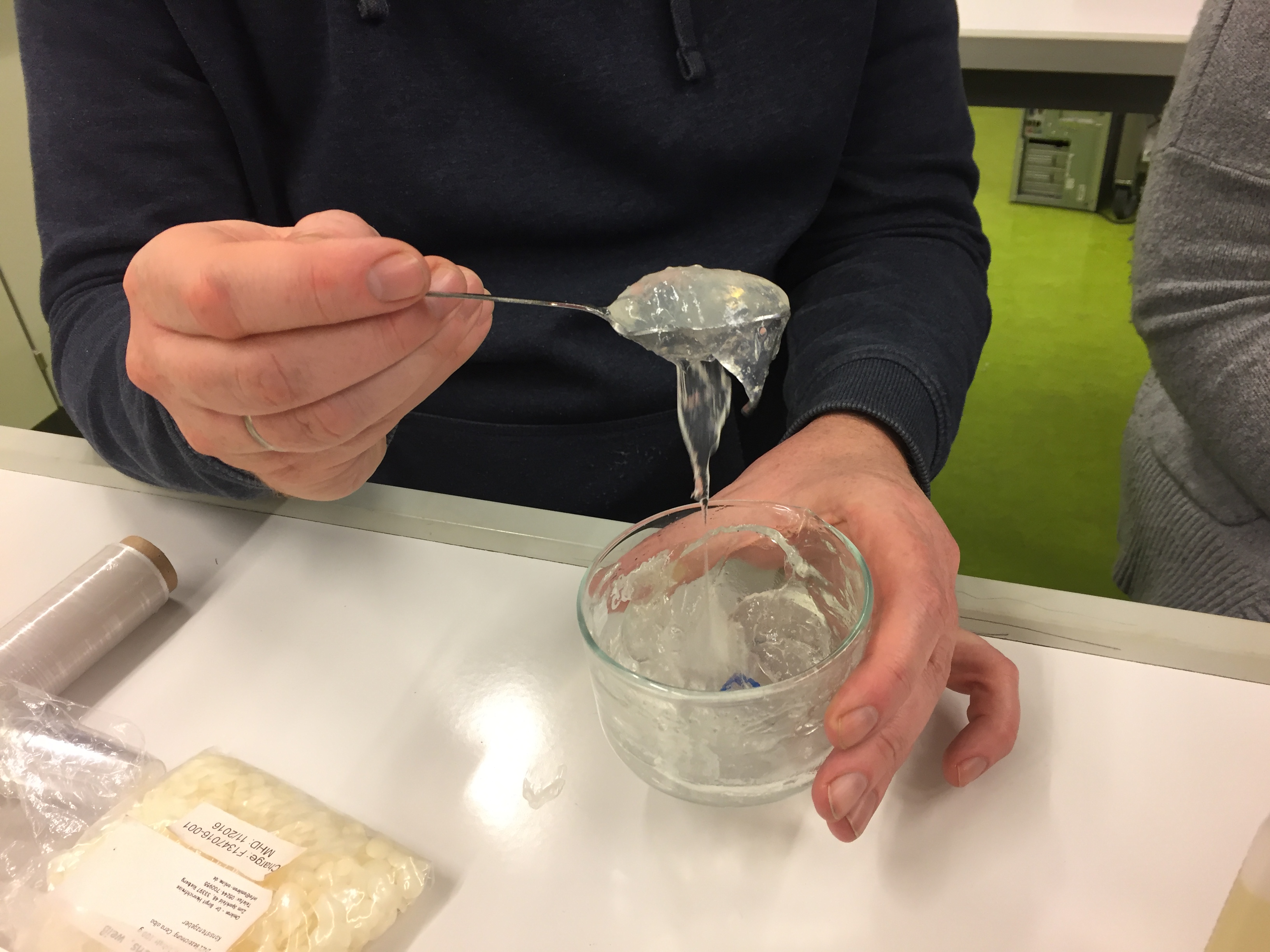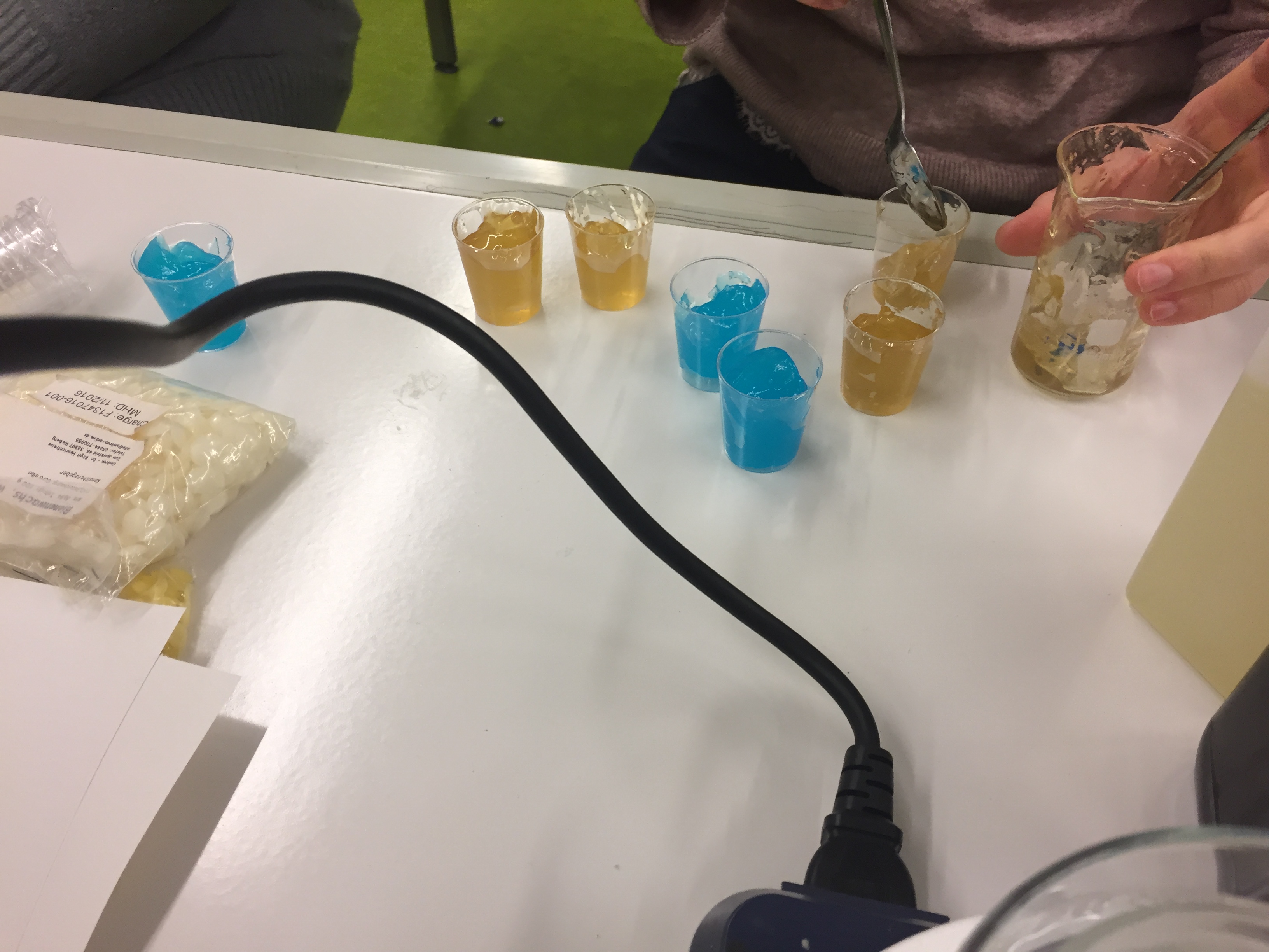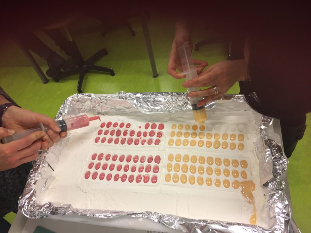 In der Oberstufe können im Sachgebiet „Chemie der funktionalen Stoffe und Materialien“ anhand von Medikamenten Struktur-Eigenschaftsbeziehungen untersucht werden. Während der Fortbildung konnten nun verschiedene Versuche ausprobiert werden, die das Interesse der Schülerinnen und Schüler wecken dürften und einen schülerorientierten Unterricht ermöglichen. So wurden von den Lehrkräften Gummibärchen mit Vitamin C oder Methanol hergestellt.