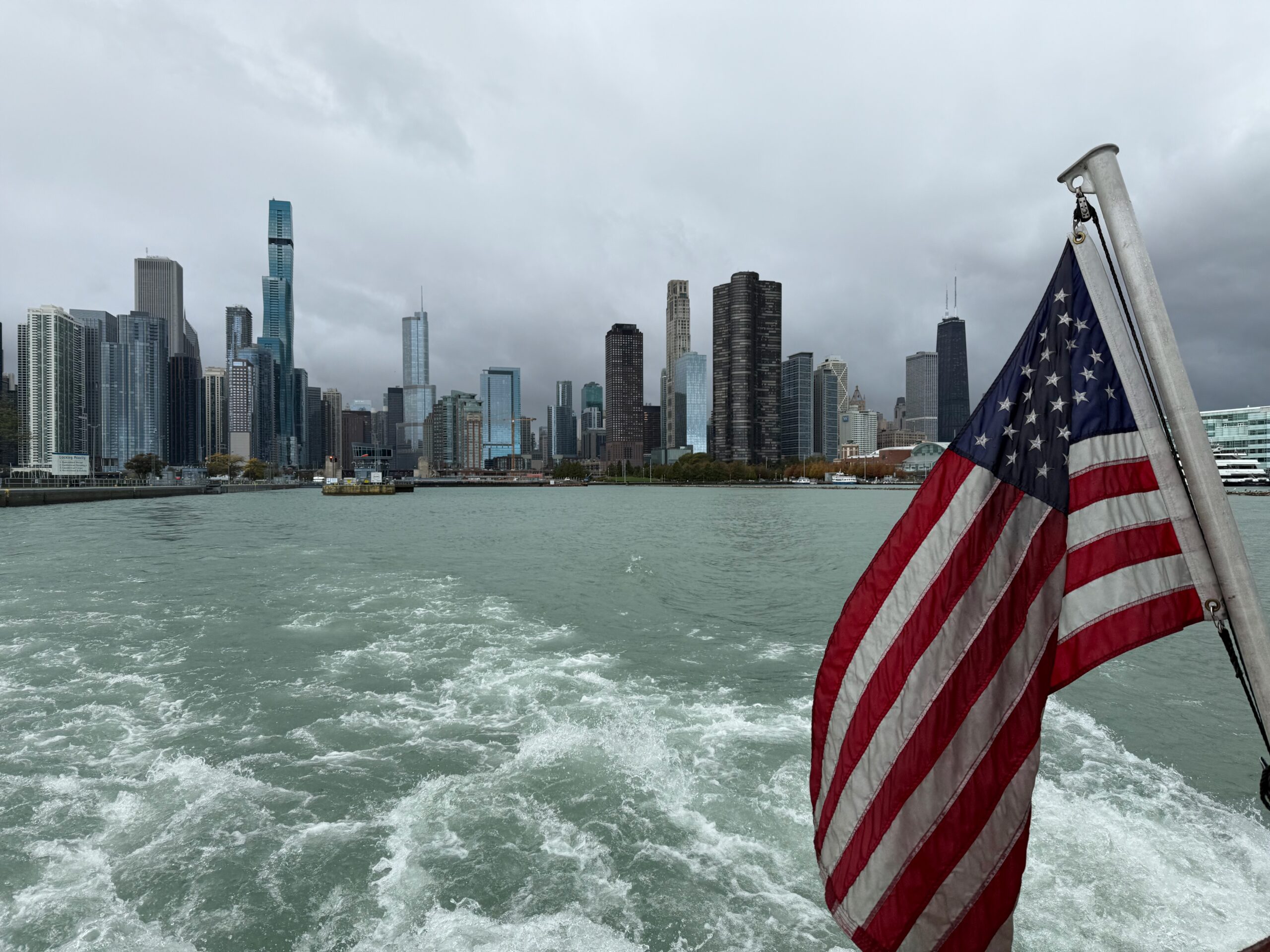 Um aber nicht nur das Leben im Suburb kennenzulernen, sondern auch das Großstadtleben in einer der attraktivsten und interessantesten Städte Amerikas, ging es dann in der zweiten Woche mit dem Zug in die City of Chicago, wo wir in einem zentral gelegenen Youth Hostel untergebracht waren. Wie bereits in der ersten Woche wurden wir meist von herrlichem Spätsommerwetter auf unserem abwechslungsreichen Programm begleitet. Wenngleich der erste Programmpunkt am einzigen Regentag startete, bot die Bootsfahrt über den Chicago River und entlang des Ufers auf dem Lake Michigan faszinierende Ansichten auf die Stadt und interessante Informationen zur Geschichte und Architektur.