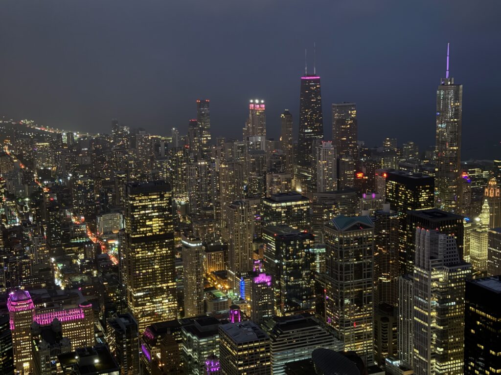 Anschließend ging es hoch hinaus auf die Aussichtsplattform des Willis Towers, wo wir bei Sonnenuntergang und einsetzender Dunkelheit den spektakulären Blick über große Teile der „City at night“ genießen konnten.