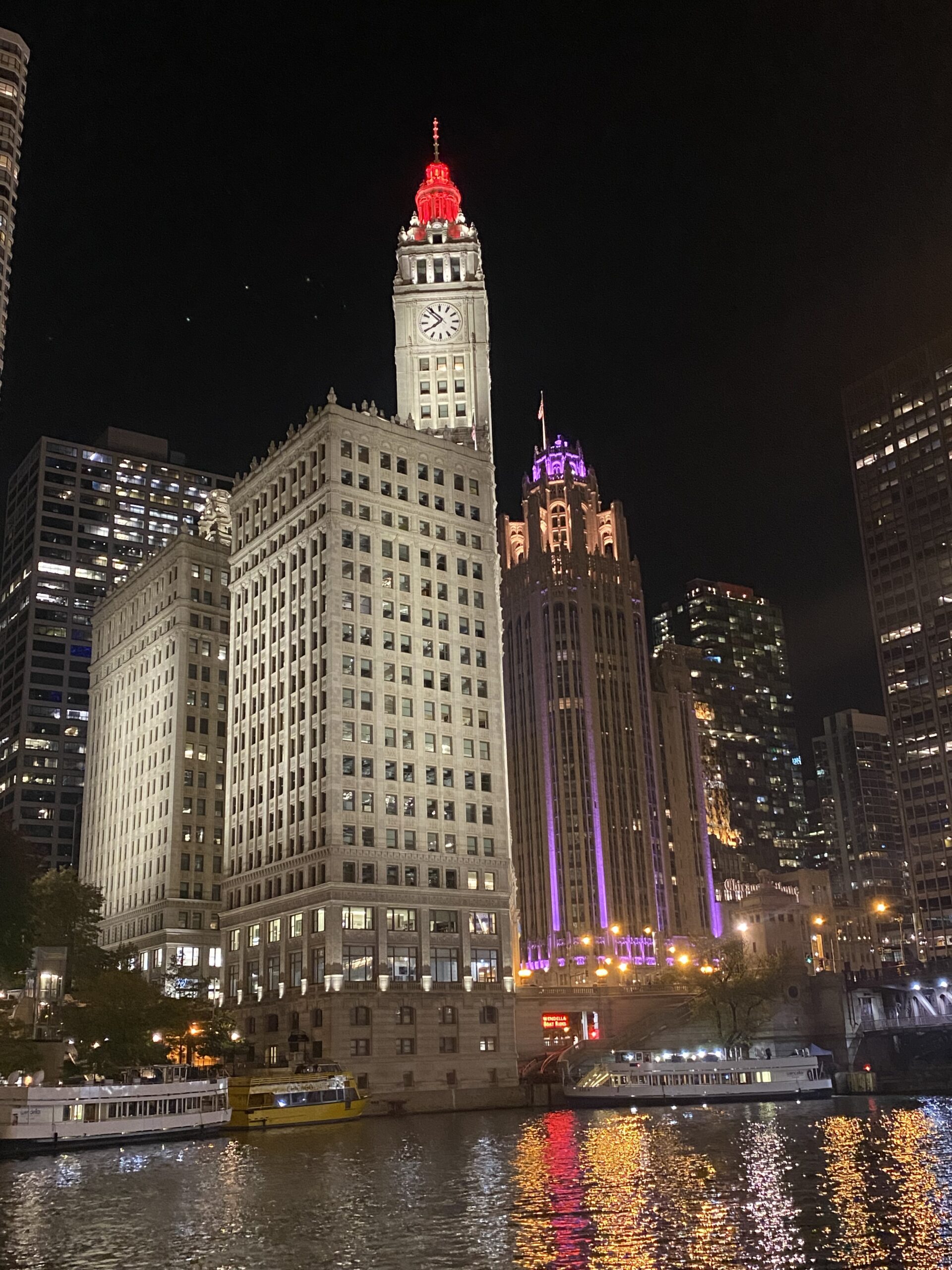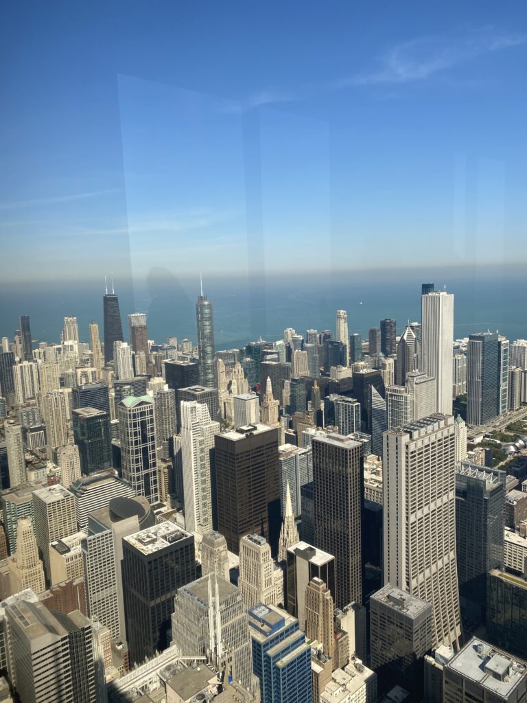 In der zweiten Woche haben wir uns am Dienstag alle zusammen in den Commons – einer Art Aula – in der Schule getroffen und uns anschließend zum Bahnhof in Downers Grove begeben. Wir nahmen den Zug nach Downtown Chicago, also dem Zentrum von Chicago. Dort angekommen haben wir unser Gepäck zum Hostel gebracht und sind dann gleich zum Cloud Gate im Millennium Park gegangen. Diese Skulptur hat die Form einer riesigen verspiegelten Bohne und wird daher auch ‚The Bean‘ genannt. Dort wurden natürlich viele Fotos geschossen. Nach einer kurzen Mittagspause ging es dann auch gleich weiter zum Willis Tower, dem höchsten Gebäude in ganz Chicago. Dort ging es 412 m mit dem Fahrstuhl hoch zum berühmten Skydeck, wo ebenfalls sehr viele Fotos geschossen wurden. Der Ausblick war unglaublich, man konnte ganz Chicago überblicken. Am späteren Nachmittag haben wir an einer Bootstour über den Chicago River und den Lake Michigan teilgenommen. Ein Touristenführer hat dabei viel über die Geschichte Chicagos und auch teilweise über die Architektur und Geschichte einiger Wolkenkratzer gesprochen, die man vom Fluss und See aus gut erkennen konnte. Auf dem See hatte man eine wunderschöne Sicht auf die Skyline von Chicago. Am Abend sind wir noch alle gemeinsam Pizza essen gegangen und anschließend zurück zum Hostel.