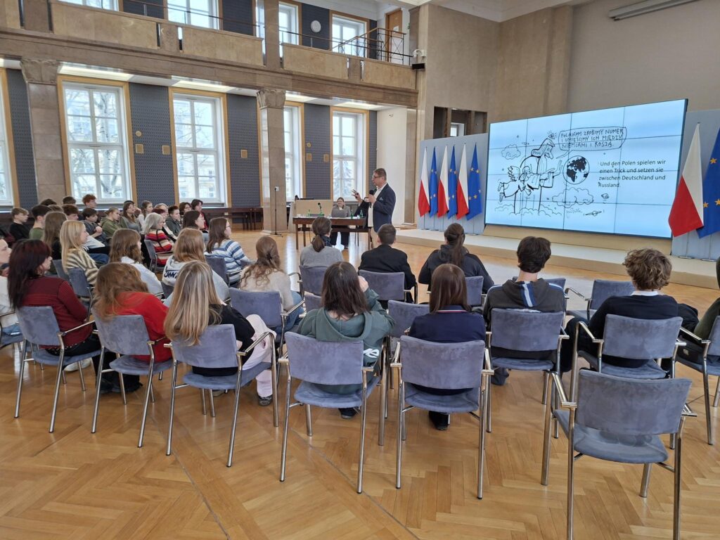Am Donnerstag haben wir die Kanzlei des Ministerpräsidenten der Republik Polen besucht. Der Vortrag war besonders spannend, weil der Referent fließend zwischen Deutsch und Polnisch gewechselt hat. Es wurde nicht nur erklärt, welche Aufgaben die Kanzlei hat, etwa die Organisation der Arbeit des Premierministers, die Koordination der Ministerien und die Information der Öffentlichkeit, sondern es wurde auch die enge Verbindung zwischen Polen und Deutschland deutlich. Auch die gemeinsame Geschichte und die heutige Partnerschaft zwischen beiden Ländern wurden thematisiert.