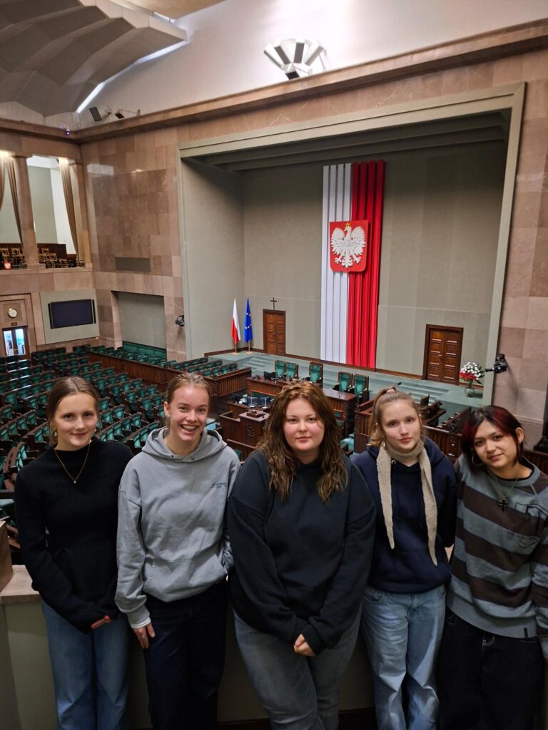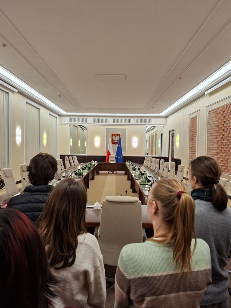 Danach ging es weiter zum Parlamentsgebäude, in dem sich der Sejm und der Senat befinden. Bei einer Führung lernten wir das politische System Polens und die Entstehung von Gesetzen kennen.