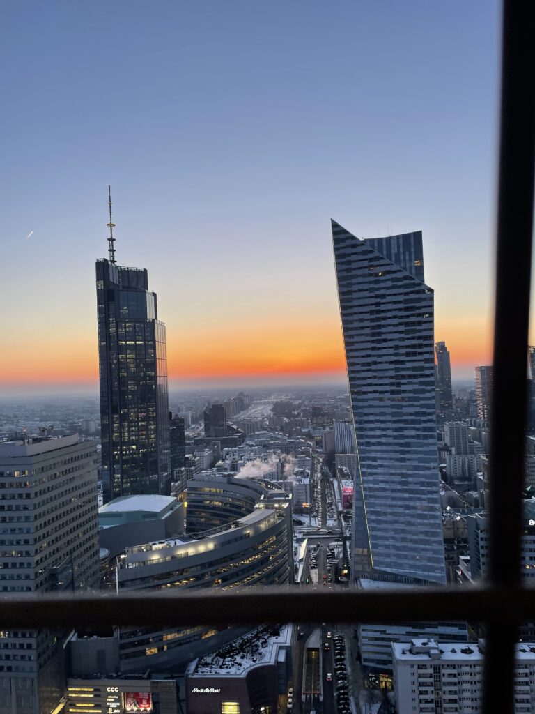 Zum Abschluss des Tages fuhren wir auf die Aussichtsplattform vom Palast der Kultur und Wissenschaft, von wo aus wir einen wunderschönen Sonnenuntergang über der Stadt sehen konnten – ein perfekter Abschluss für einen ereignisreichen Tag.