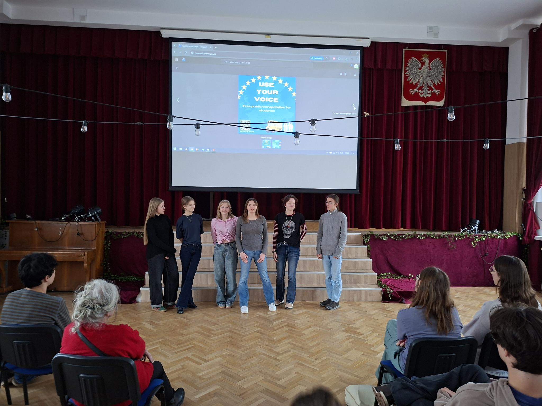 Nach einer Mittagspause in der Schulmensa – es gab Reis mit Apfelkompott und Vanillesoße, dazu eine leckere Gemüsesuppe und eine Mandarine zum Nachtisch – präsentierten wir die Projekte der Gruppen in der Aula. Viele von ihnen hatten mit der Verbesserung des öffentlichen Nahverkehrs zu tun. Zum Abfragen des erworbenen Wissens spielten wir eine Runde Kahoot, in der Emil gewann. Online fanden weitere Rückmeldungen im Rückblick auf die Woche statt. Als Abschluss des offiziellen Programms bekam jeder ein Zertifikat des Deutsch-Polnischen-Jugendwerkes. Ungefähr die Hälfte der Gruppe fuhr noch in die Altstadt, um ein letztes Mal Pierogi zu essen.