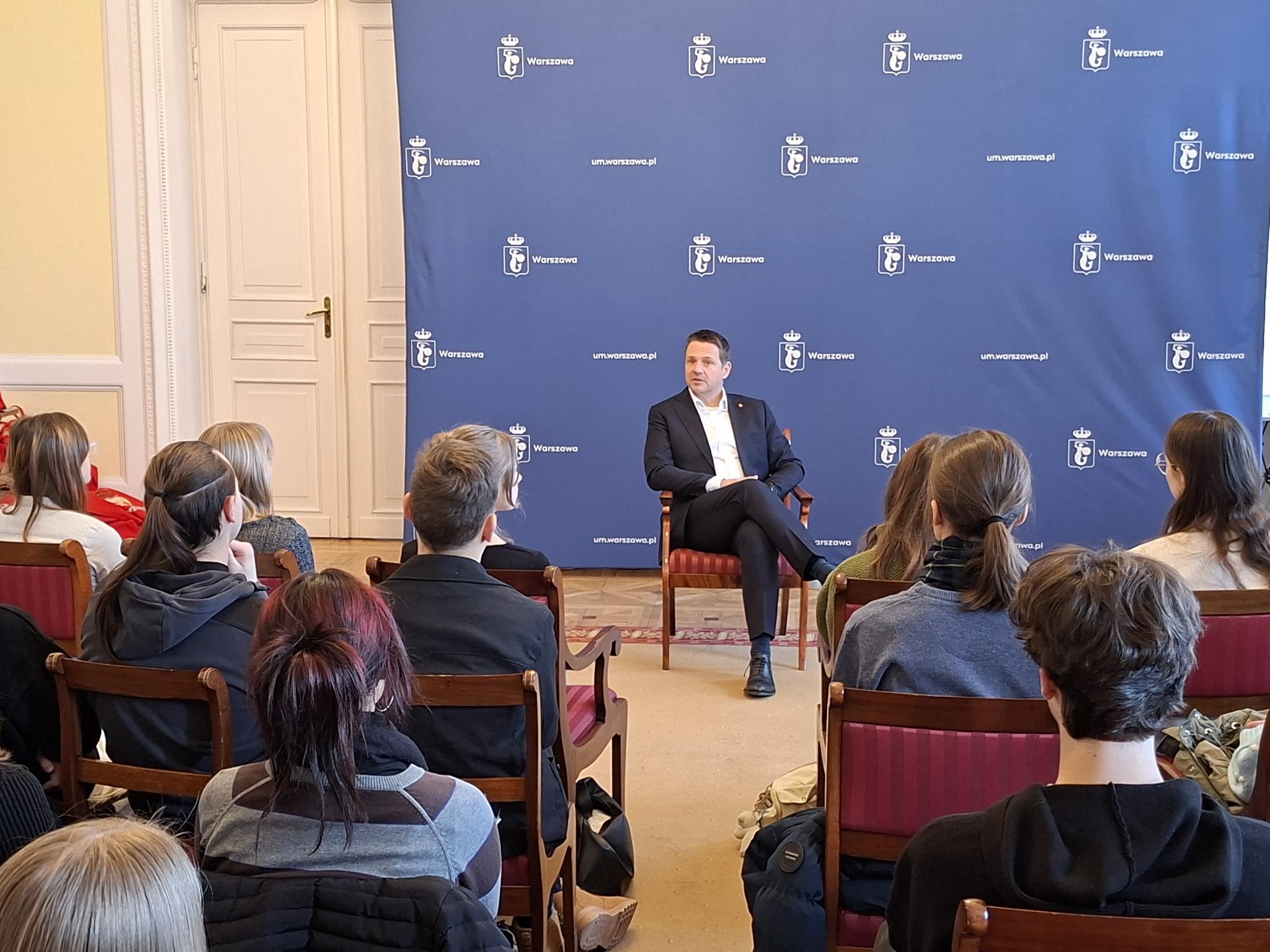 Am Montag starteten wir unseren Tag in Warschau mit einer Führung durch unsere Gastgeberschule, das VII LO im. Juliusza Słowackiego. Zuerst bekamen wir eine kurze Einführung und lernten das Schulgebäude sowie den Schulalltag in Polen kennen. Es war spannend zu sehen, wie der Unterricht dort organisiert ist und worin sich das Schulsystem von unserem unterscheidet. Anschließend besuchten wir das Rathaus, wo wir den Bürgermeister von Warschau, Rafał Trzaskowski, trafen. Wir machten eine Stunde lang ein Q and A und haben so vieles über seine Aufgaben und die Entwicklung der Stadt erfahren.